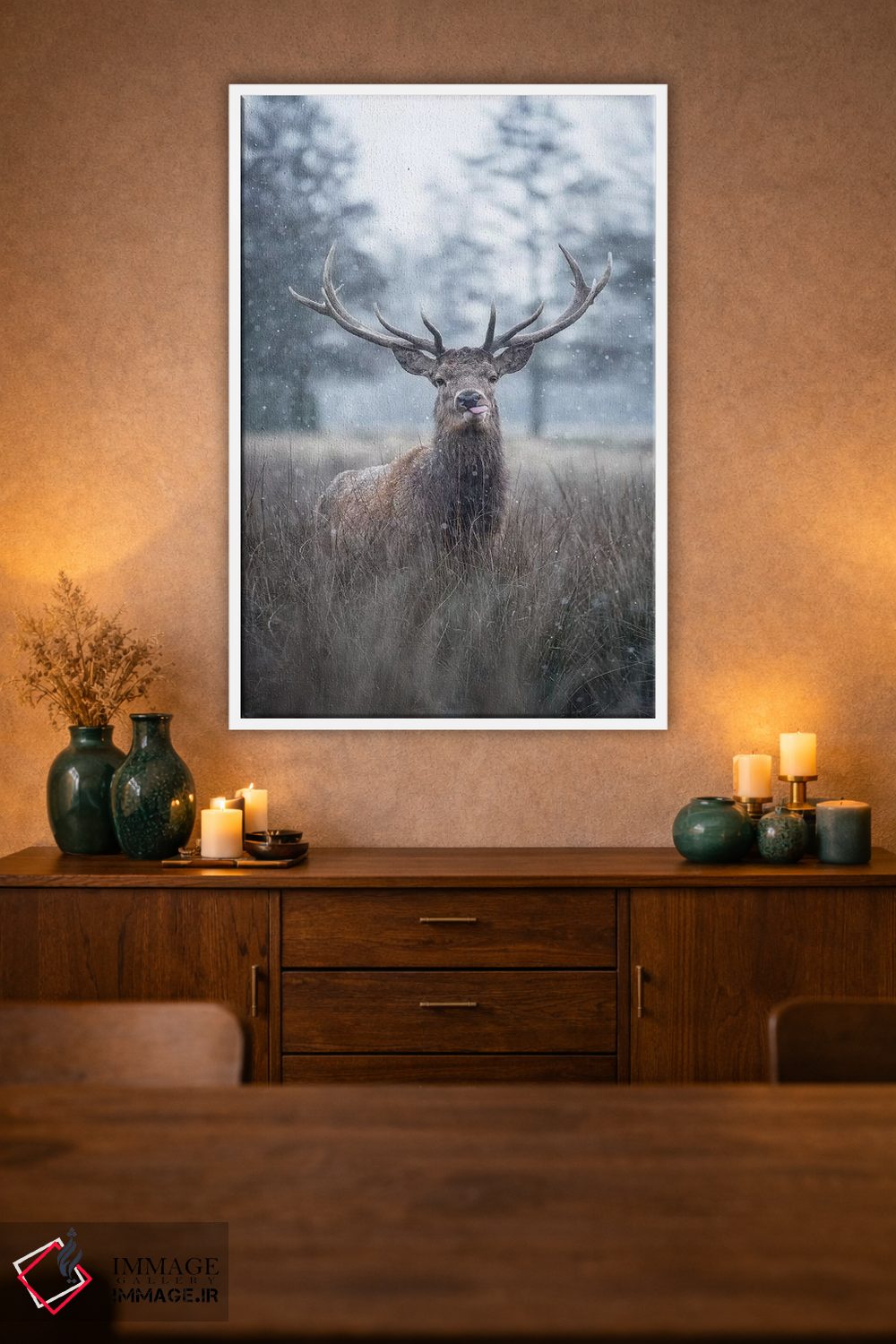 براساس پالت گرم اثر، قاب تیک گرم (چوبی) پیشنهاد اول است و مشکی مات (فریم متوسط) مکمل. برای سفارشهای پروژهای با ابعاد و قابهای اختصاصی با ایماژ در تماس باشید.