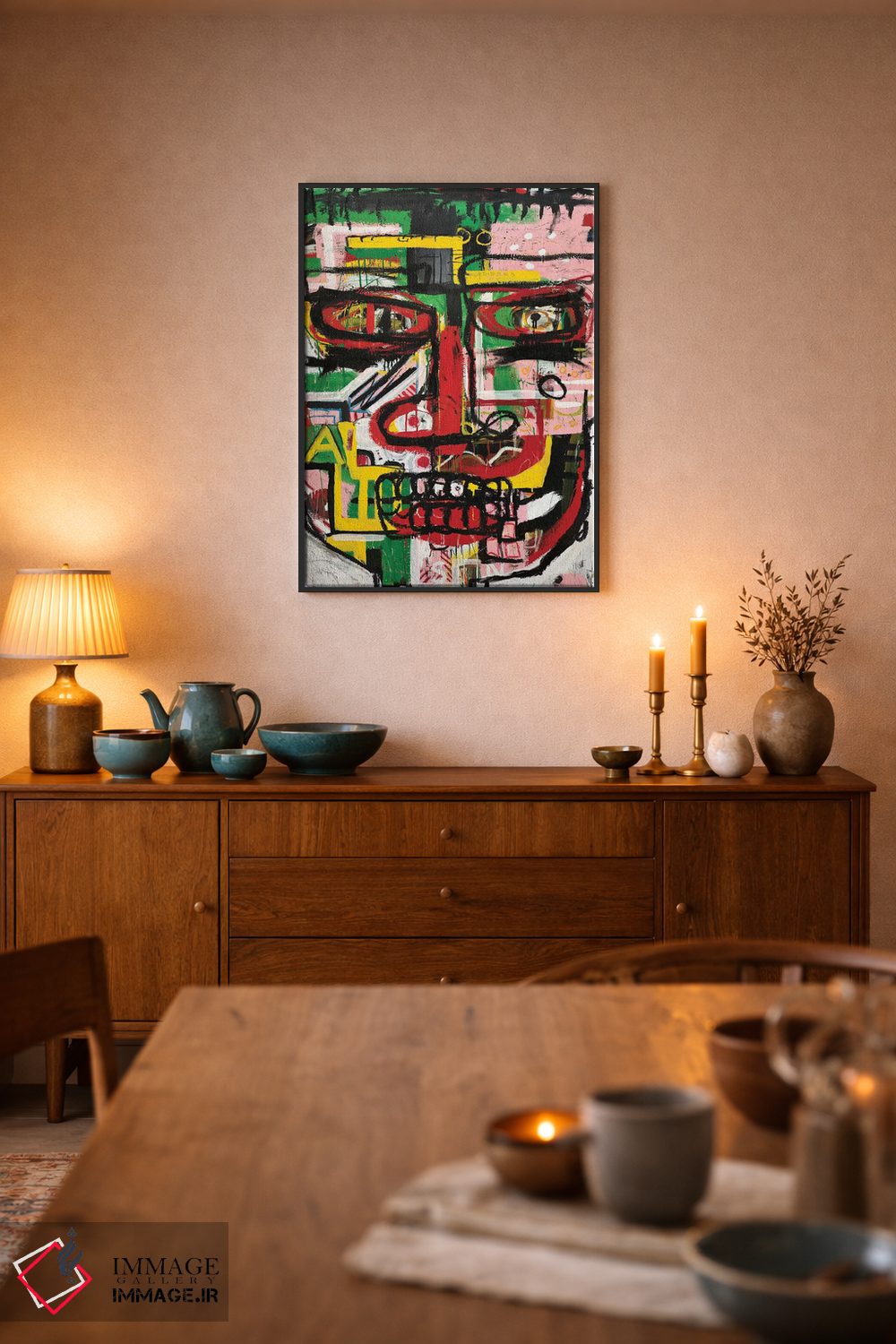 براساس پالت ترکیبی اثر، قاب تیک گرم (چوبی) پیشنهاد اول است و مشکی مات (فریم متوسط) مکمل. برای سفارشهای پروژهای با ابعاد و قابهای اختصاصی با ایماژ در تماس باشید.