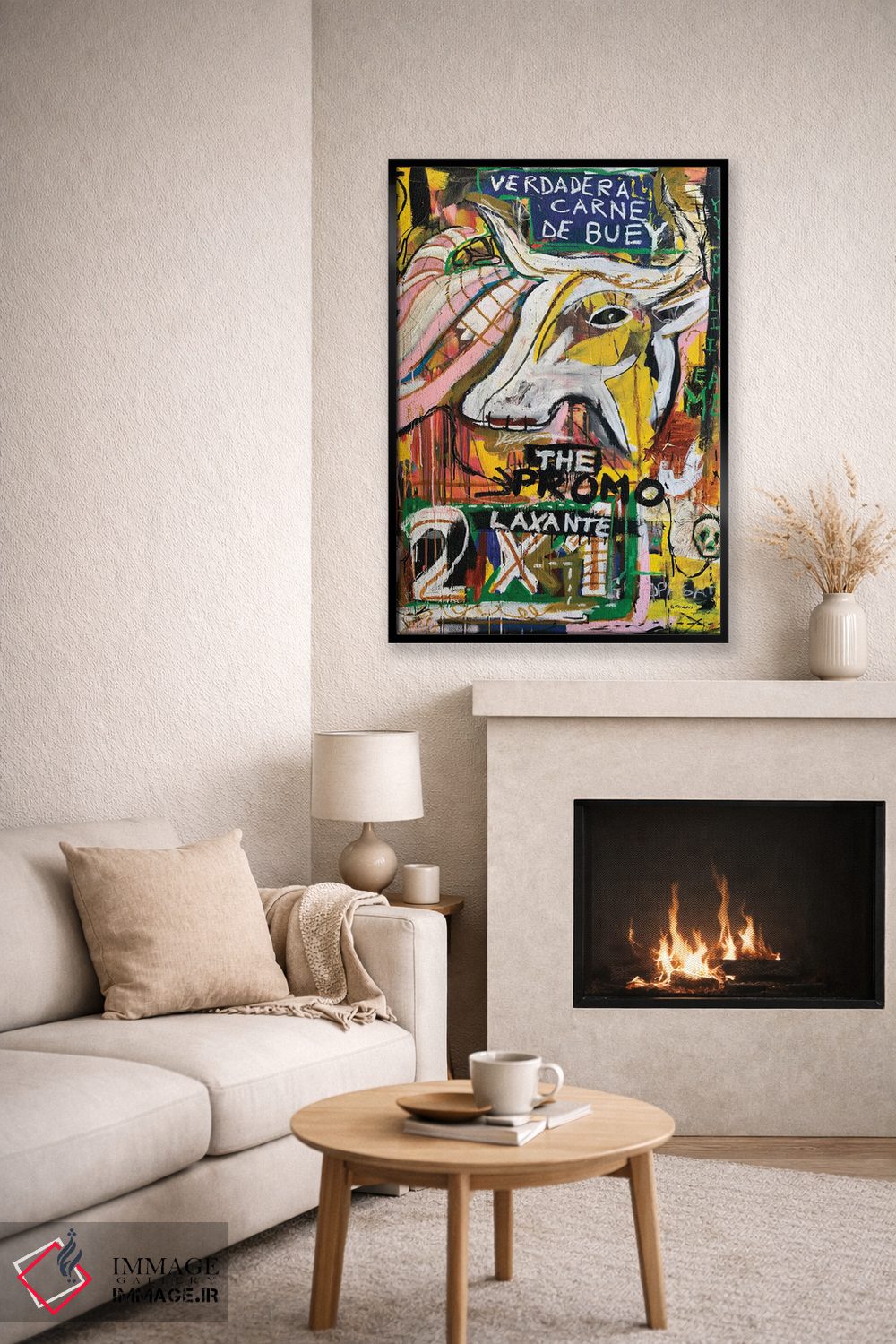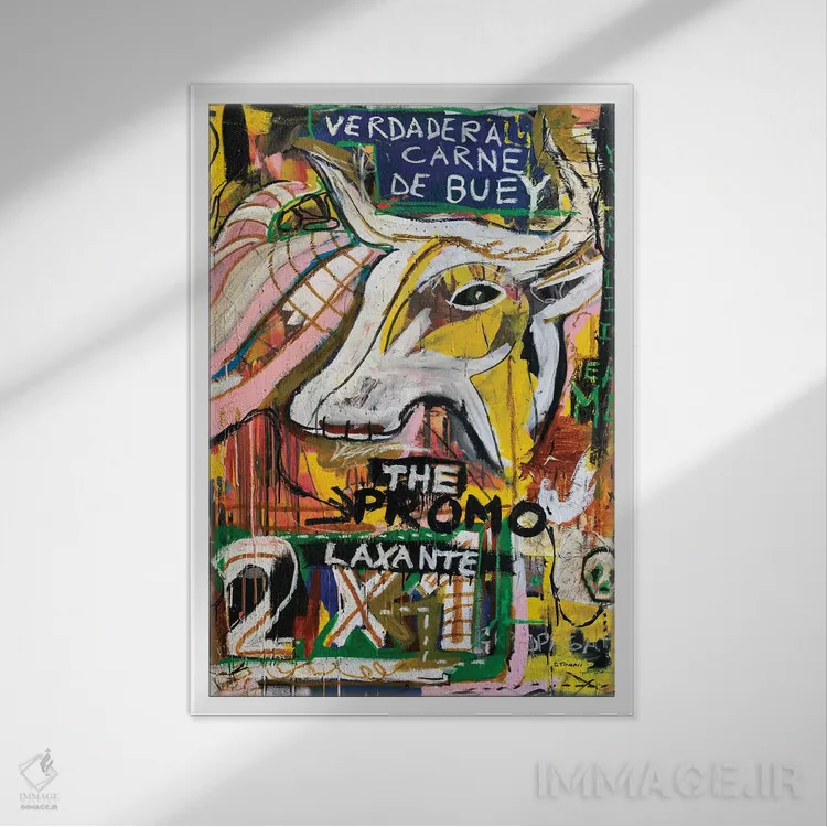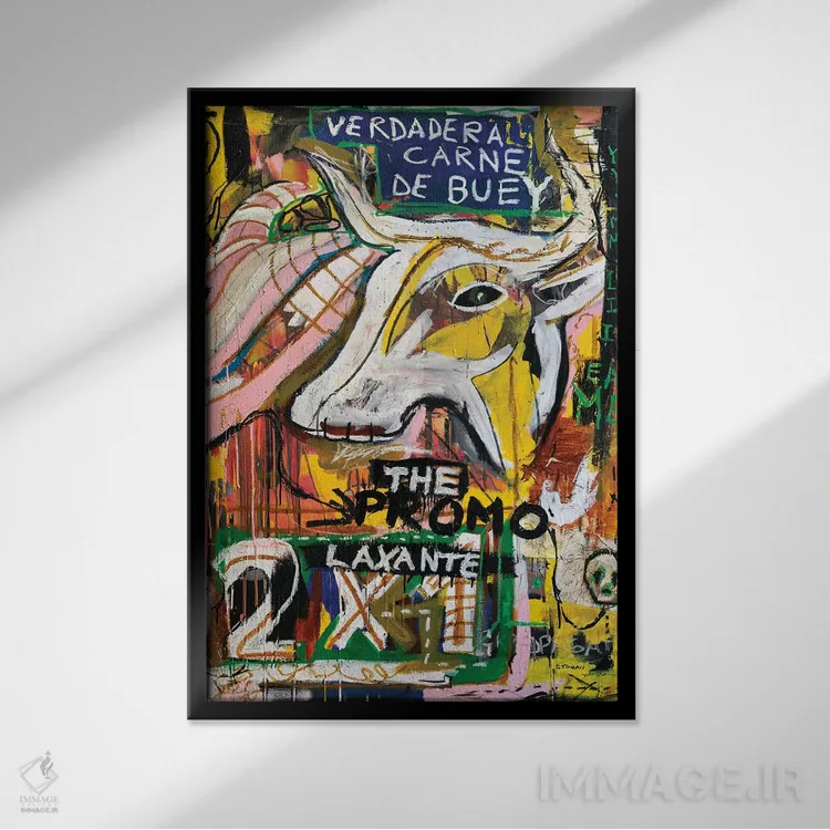 «گوشت واقعی گاو نر I (اسپانیایی)» اثرِ «دیهگو تیریگال» در قالب هنری، به فضا عمق و ریتم میدهد؛ برای کنار مبلمان ساده و نورپردازی گرم عالی است.