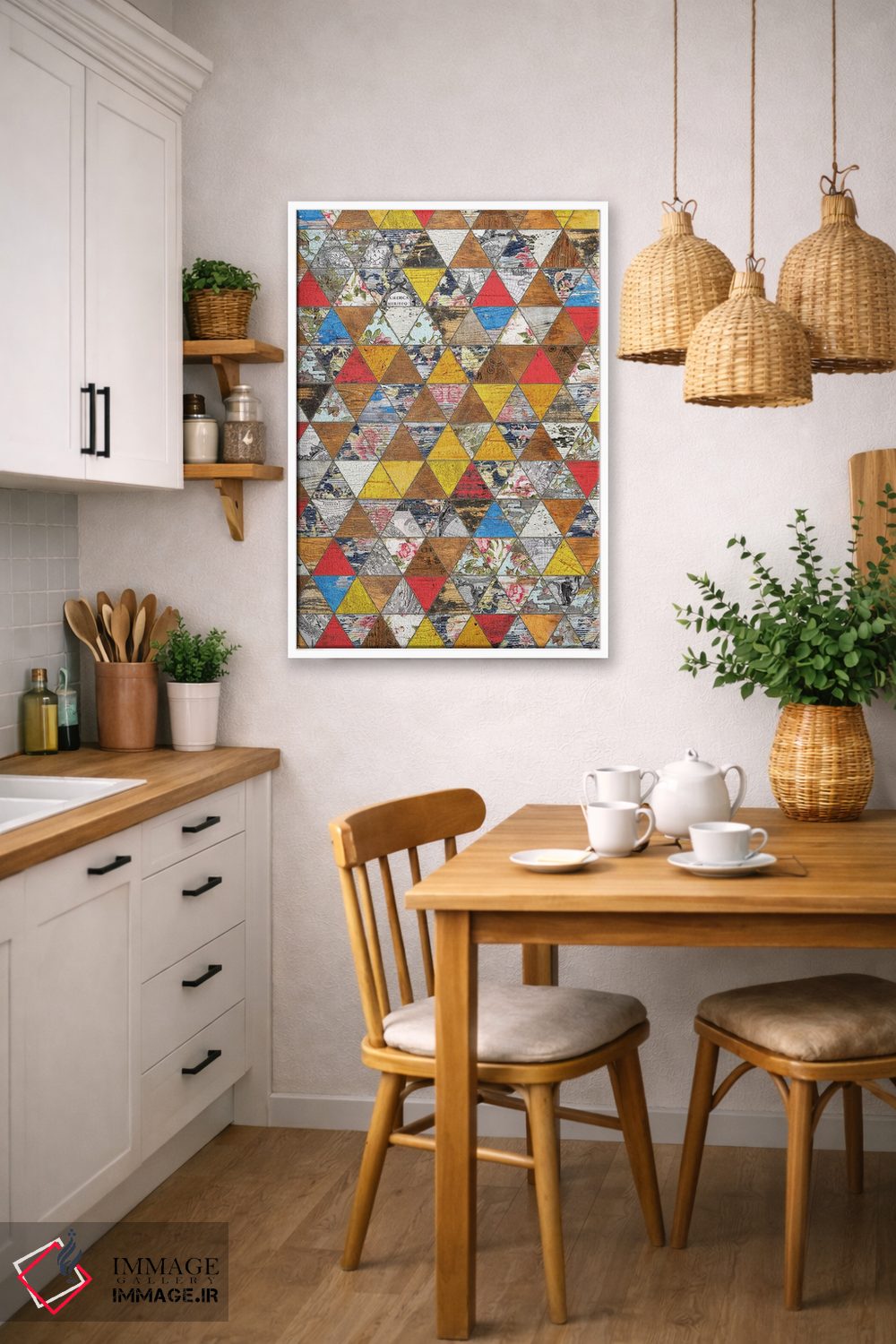 در «هندسه روستایی دو» اثرِ «دیهگو تیریگال»، رنگ و فرم نقش اصلی را دارند؛ انتخابی خوب برای فضاهای امروزی و دیوارهای مینیمال.