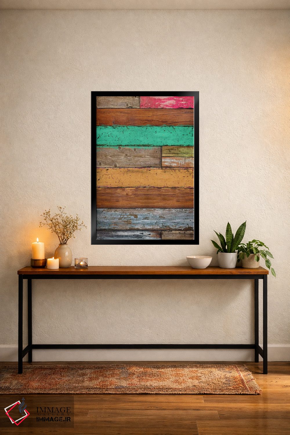 براساس پالت ترکیبی اثر، قاب تیک گرم (چوبی) پیشنهاد اول است و مشکی مات (فریم متوسط) مکمل. برای سفارشهای پروژهای با ابعاد و قابهای اختصاصی با ایماژ در تماس باشید.
