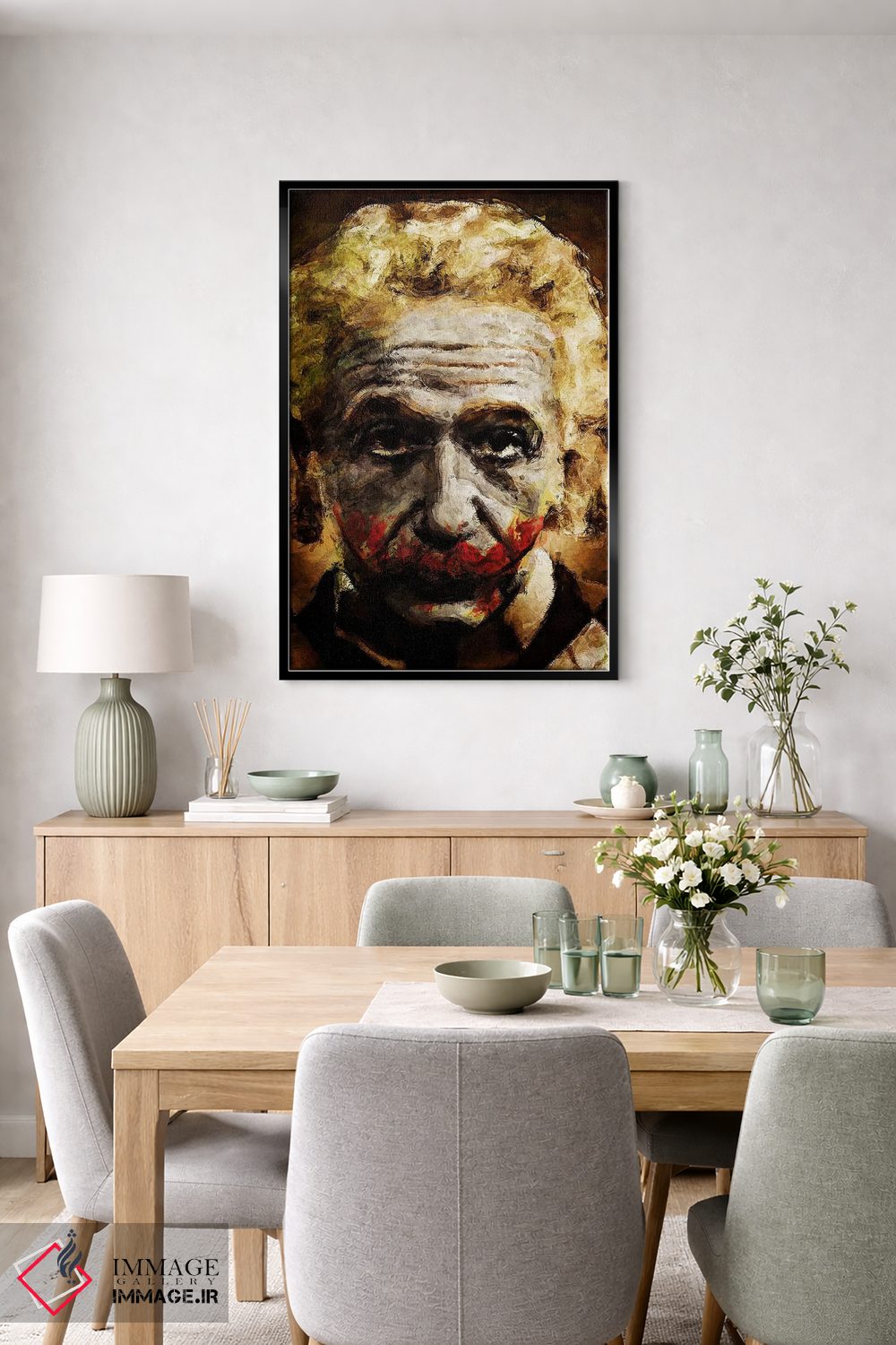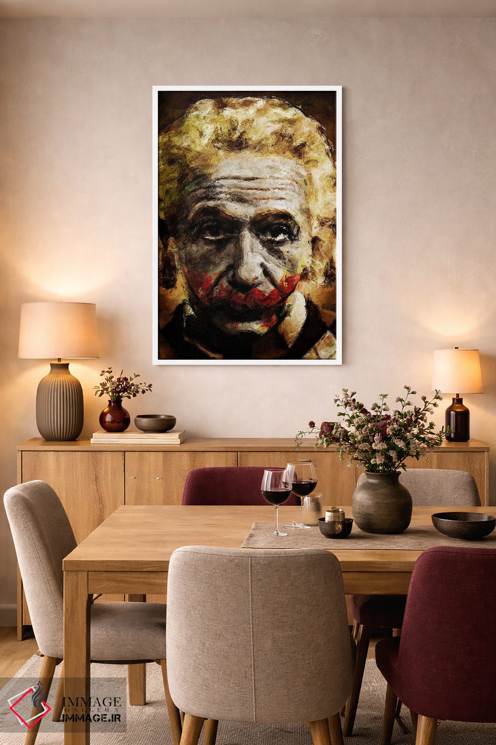 اگر اهل «کم اما درست» هستید، «اینشتین دلقک» اثرِ «دیهگو تیریگال» بین نور و رنگ، تعادل خوشنشینی میسازد؛ برای دیوار بالای کنسول یا شومینه پیشنهاد میشود. هم از دور چشمگیر است و هم از نزدیک پرداخت دارد.