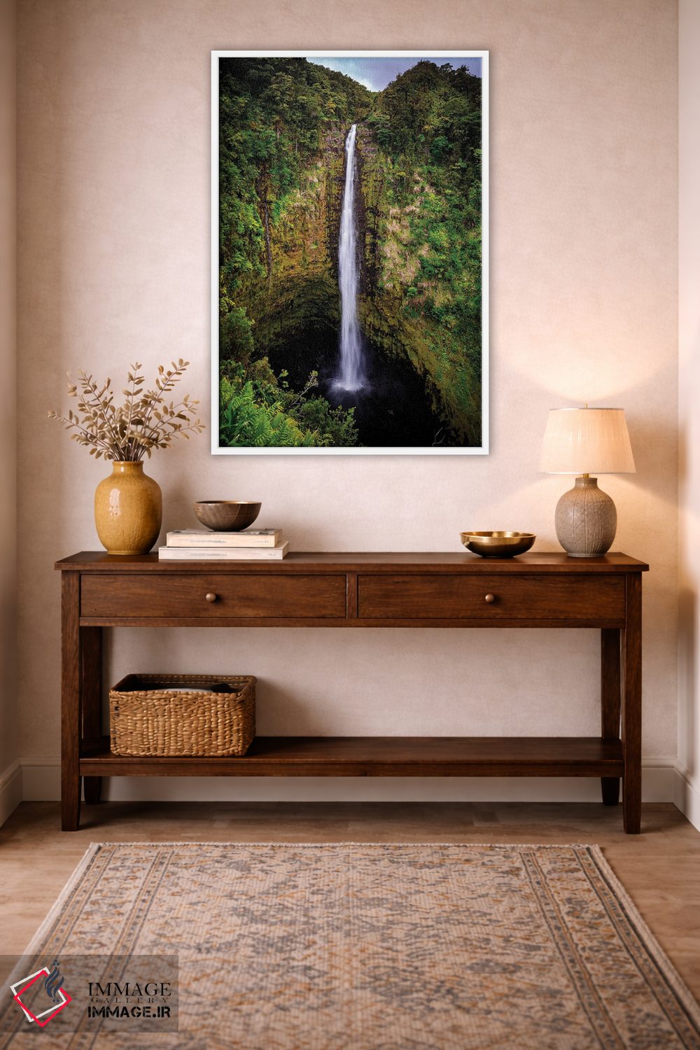 «آبشار آکاکا (هاوایی)» اثرِ «شین مایرز» انتخابیست برای زمانی که یک مرکز توجهِ باوقار میسازد؛ برای خانههایی که به هماهنگی رنگها اهمیت میدهند انتخابی عالی است. در کنار گیاهان آپارتمانی هم جلوهٔ لطیفی پیدا میکند.