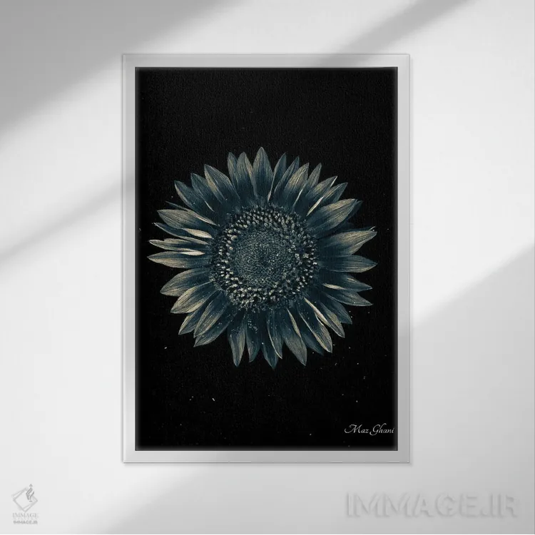 براساس پالت سرد اثر، قاب سفید مات (فریم باریک) پیشنهاد اول است و نقرهای برسخورده (متالیک) مکمل. برای سفارشهای پروژهای با ابعاد و قابهای اختصاصی با ایماژ در تماس باشید.
