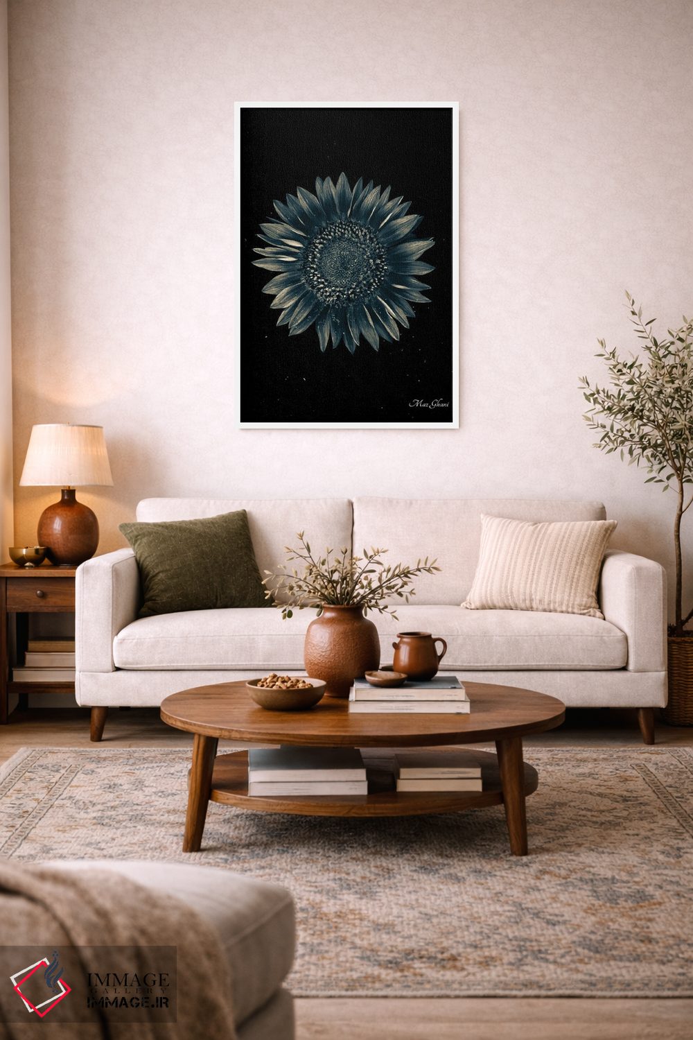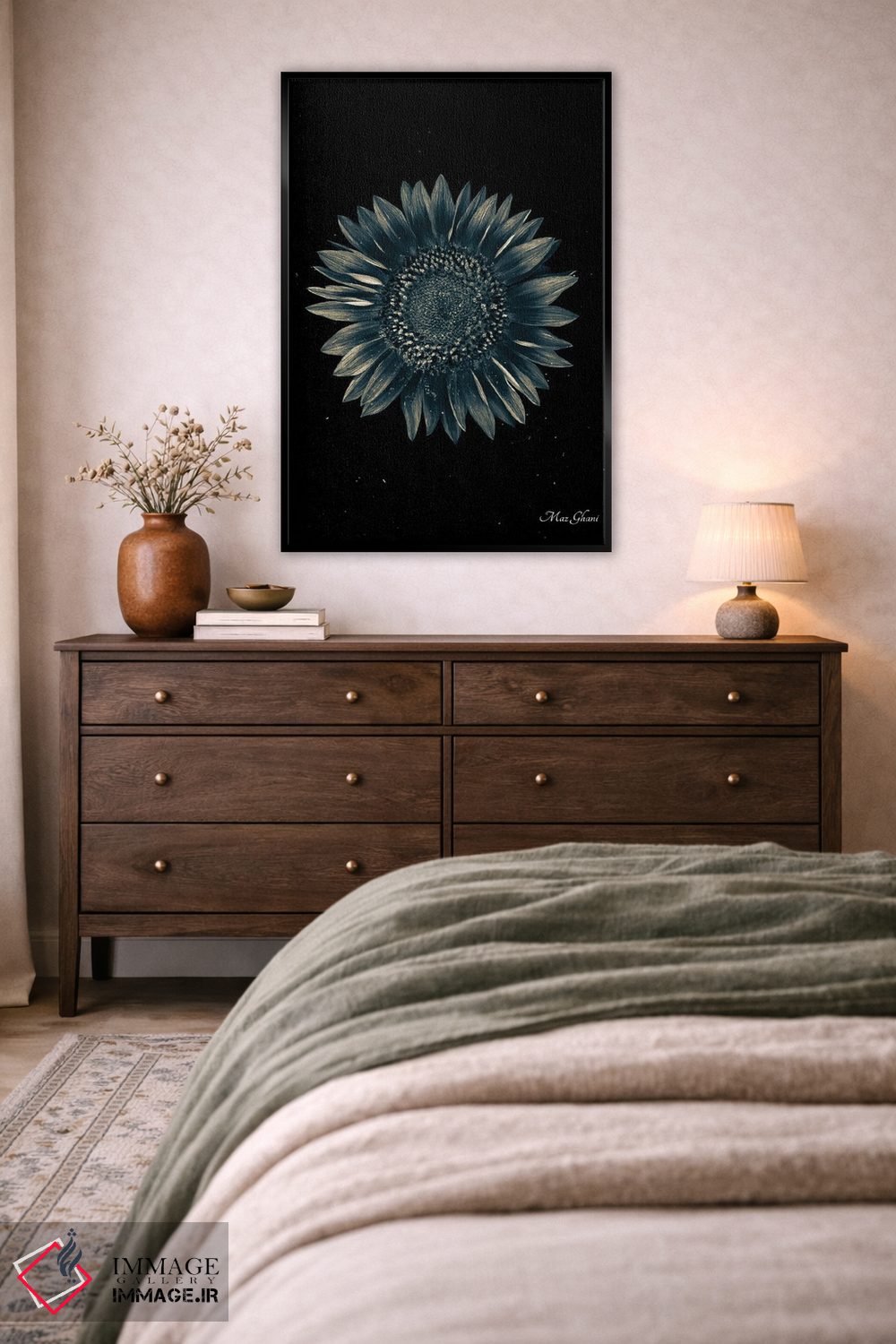 اگر به دکورهای طبیعی علاقه دارید، «آسمانی» اثرِ «ماز غنی» برای دیوارهای ساده، یک لطافتِ دقیق میسازد، برای راهروهای مینیمال گزینهٔ مناسبیست. فضا را شلوغ نمیکند؛ فقط لطیفترش میکند.