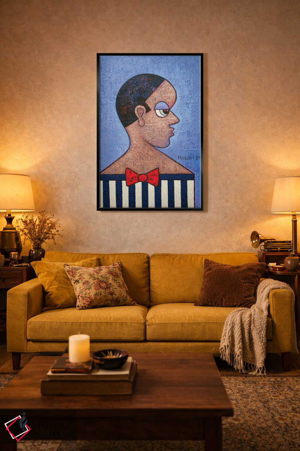 براساس پالت ترکیبی اثر، قاب تیک گرم (چوبی) پیشنهاد اول است و مشکی مات (فریم متوسط) مکمل. برای سفارشهای پروژهای با ابعاد و قابهای اختصاصی با ایماژ در تماس باشید.