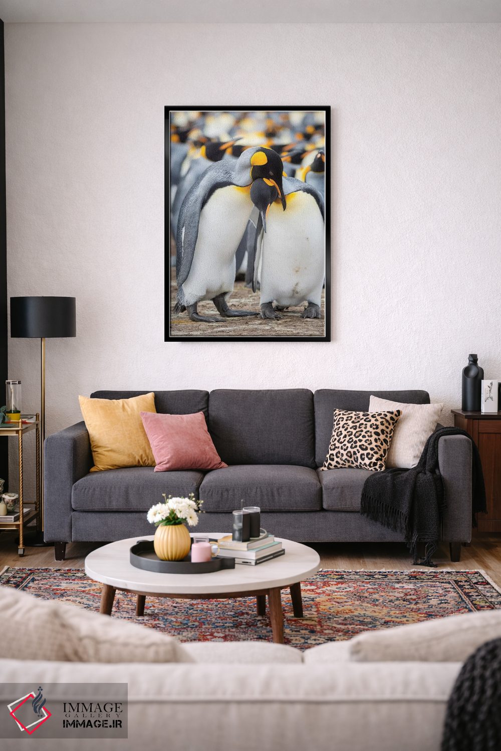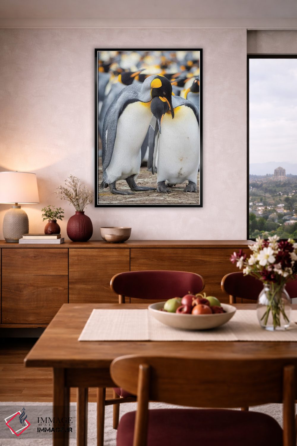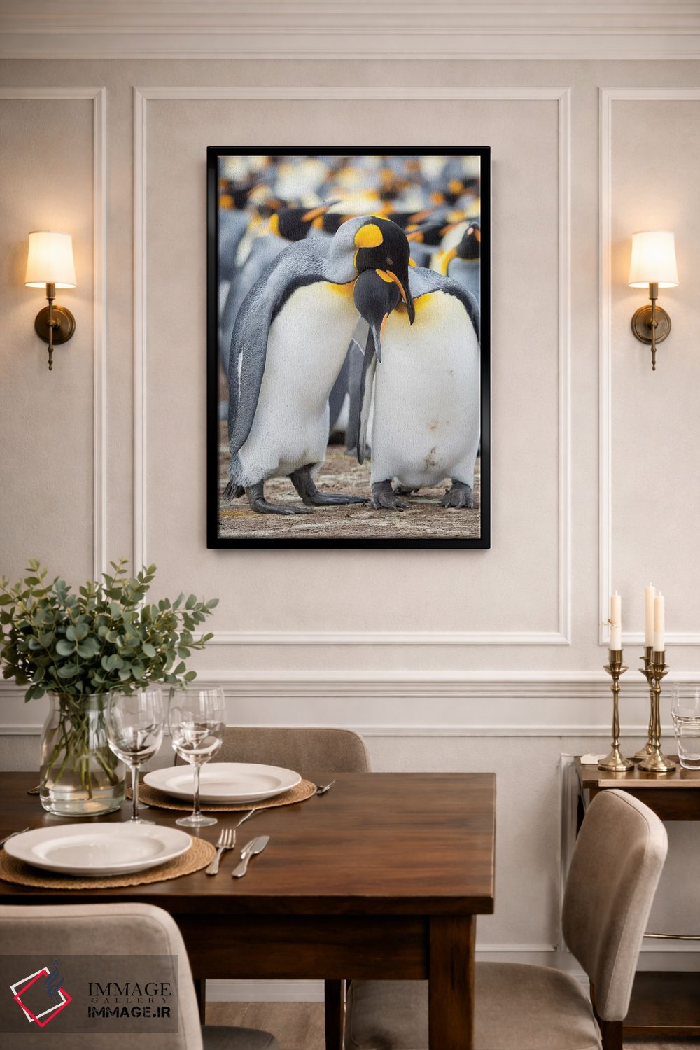 در «نمایش خواستگاری پنگوئن شاه در جزایر فالکلند» اثرِ «مارتین زویک»، حضور حیوانات مثل یک امضای بامزه اما متین عمل میکند؛ برای اتاق کودک (بدون لحن کودکانه) انتخابی خوشسلیقه است. برای دیوار گالریوار هم گزینهٔ خوبیست.