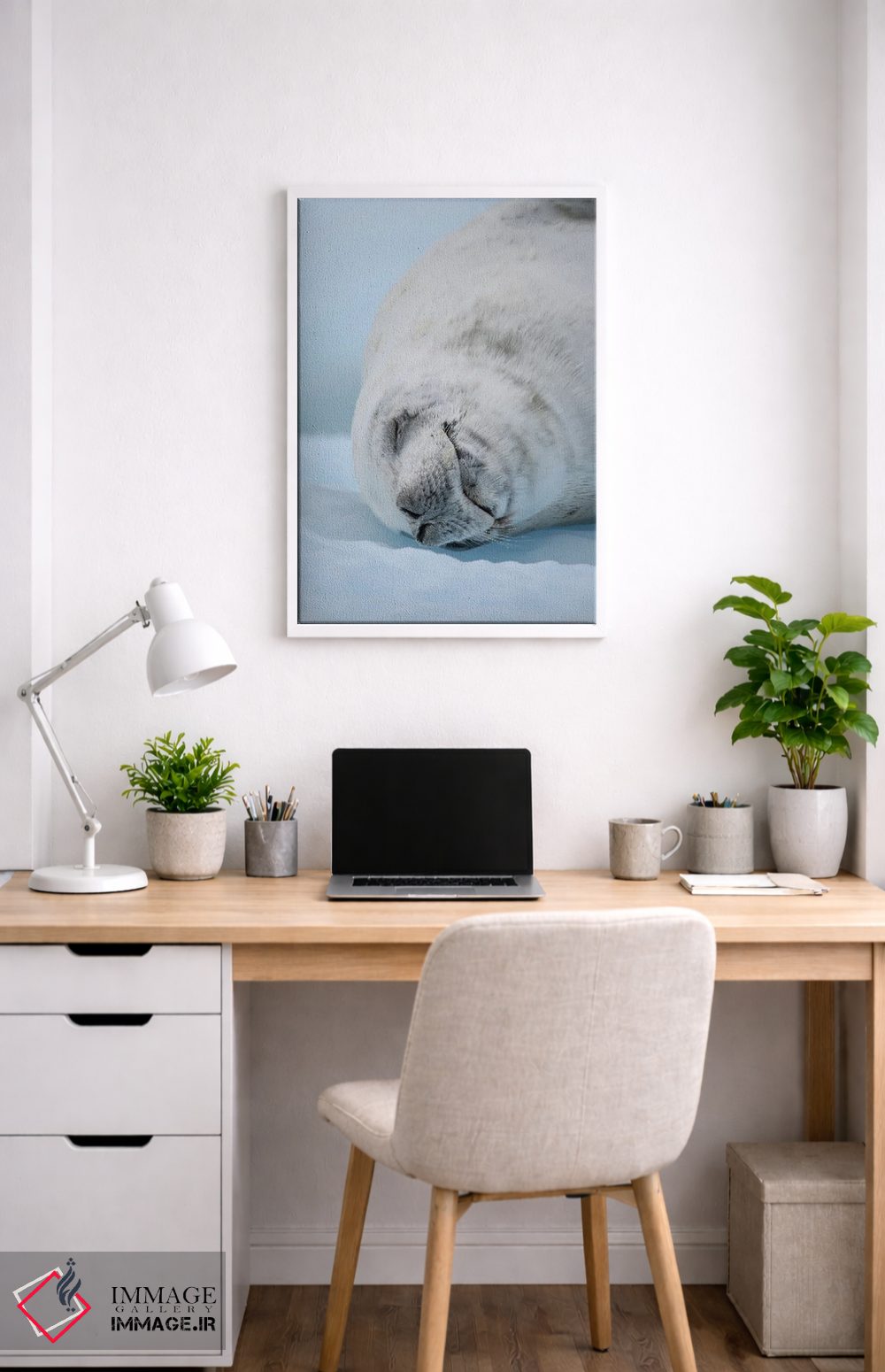 برای دکورهای صمیمی، «Resting On Ice Floe. Antarctica، Antarctic Peninsula، Detaille Island، فک خرچنگخوار، استراحت بر روی تکه یخ شناور. جنوبگان، شبهجزیره جنوبگان، جزیره دیتایل» اثرِ «مارتین زویک» بدون کودکانه شدن، بازیگوش و خوشپرداخت میماند؛ برای فضاهای روستیک یا بوهو انتخابی خوشسلیقه است. هر بار نگاهش میکنید، یک جزئیات تازه به چشم میآید.