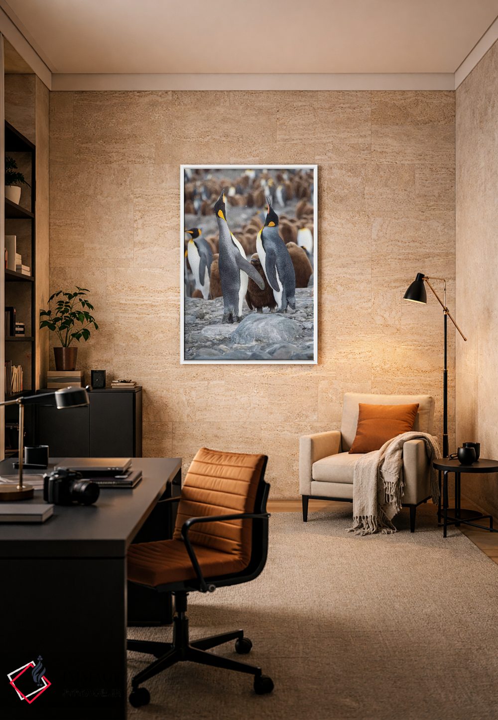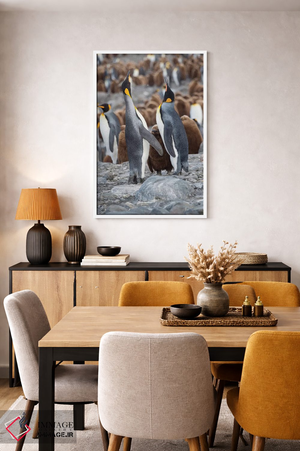 این تابلو با عنوان «کلونی پنگوئن شاهی در خلیج سنت اندروز. رفتار تغذیه. جزیره جورجیای جنوبی» اثرِ «مارتین زویک» بدون شلوغکاری، توجه را دقیق جمع میکند؛ برای فضاهای کمنور که به «نقطهٔ روشن» نیاز دارند پیشنهاد میشود. روی دیوار، طبیعی و متعادل دیده میشود—بیاغراق و درست.