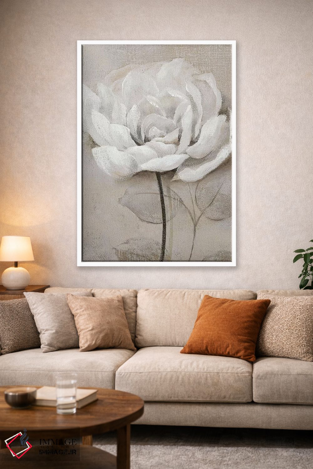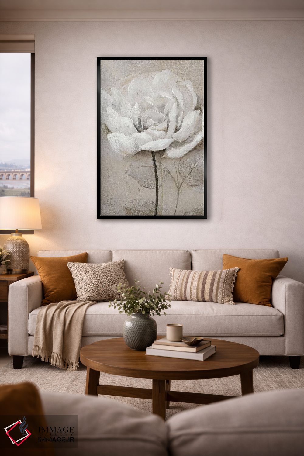 براساس پالت خنثی اثر، قاب بلوط روشن (چوبی) پیشنهاد اول است و استخوانی ملایم مکمل. برای سفارشهای پروژهای با ابعاد و قابهای اختصاصی با ایماژ در تماس باشید.
