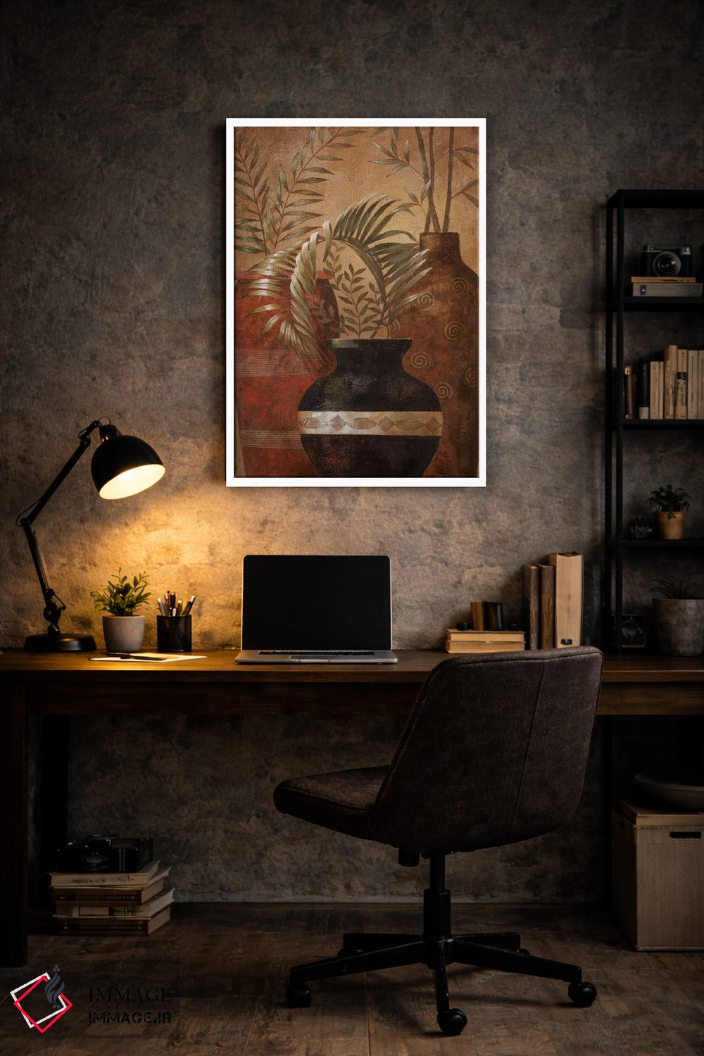 براساس پالت گرم اثر، قاب تیک گرم (چوبی) پیشنهاد اول است و مشکی مات (فریم متوسط) مکمل. برای سفارشهای پروژهای با ابعاد و قابهای اختصاصی با ایماژ در تماس باشید.