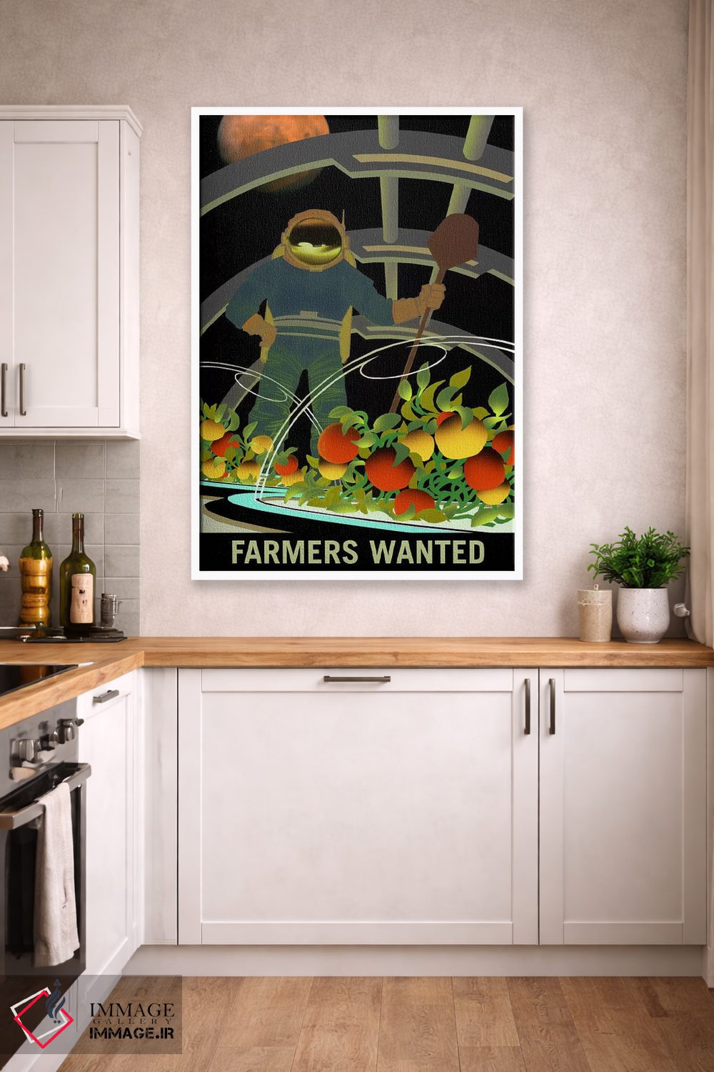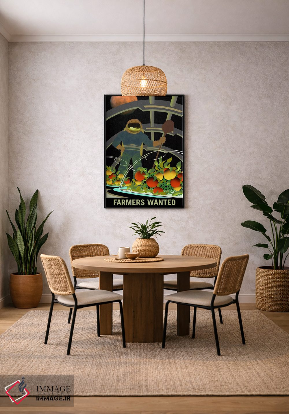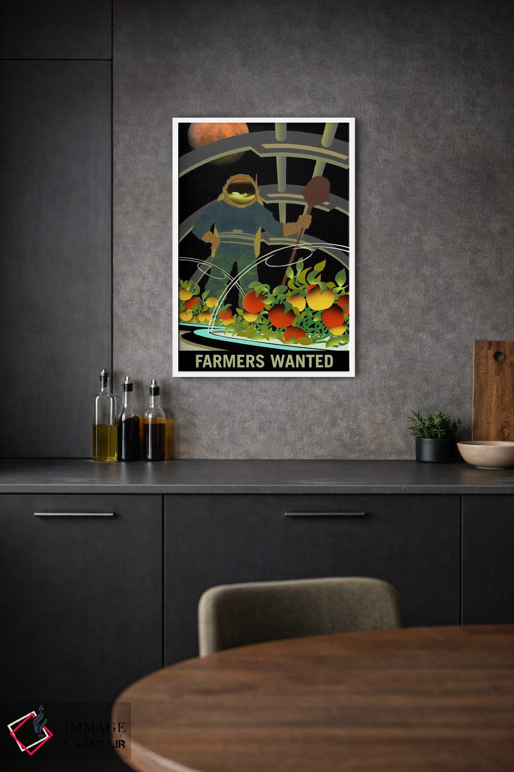 «به کشاورزان نیازمندیم» اثرِ «ناسا (آژانس فضایی آمریکا)» برای فضاهای گرم و صمیمی مناسب است؛ بهخصوص کنار چوب تیره و نور زرد.