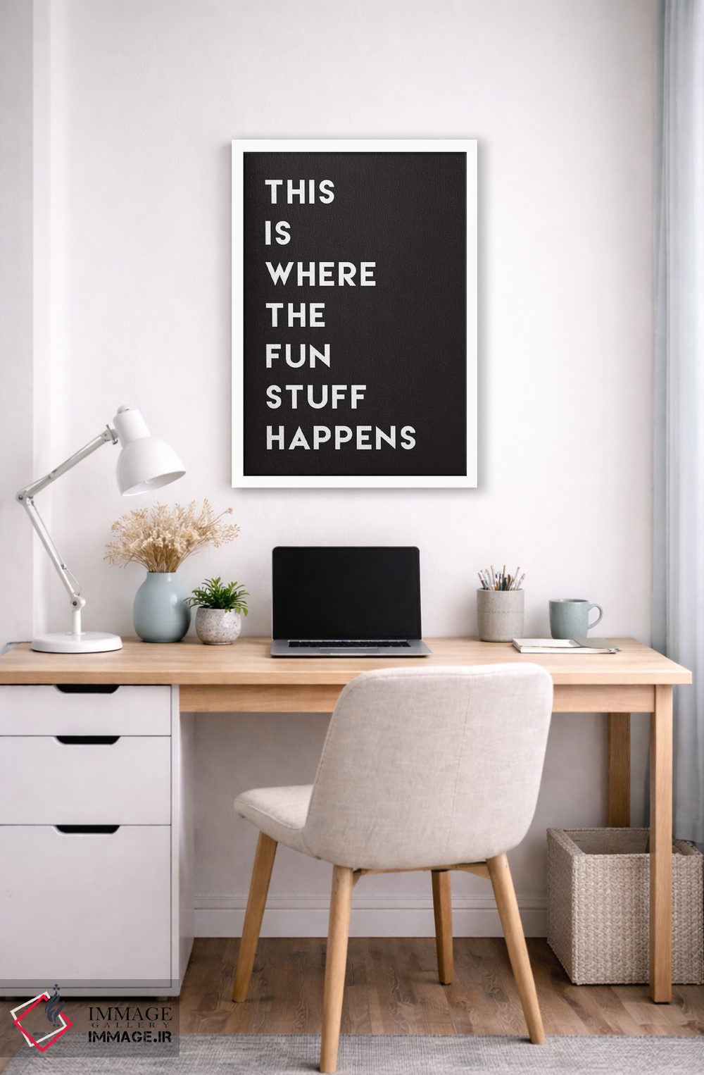 براساس پالت خنثی اثر، قاب مشکی مات (فریم باریک) پیشنهاد اول است و سفید مات (فریم باریک) مکمل. برای سفارشهای پروژهای با ابعاد و قابهای اختصاصی با ایماژ در تماس باشید.