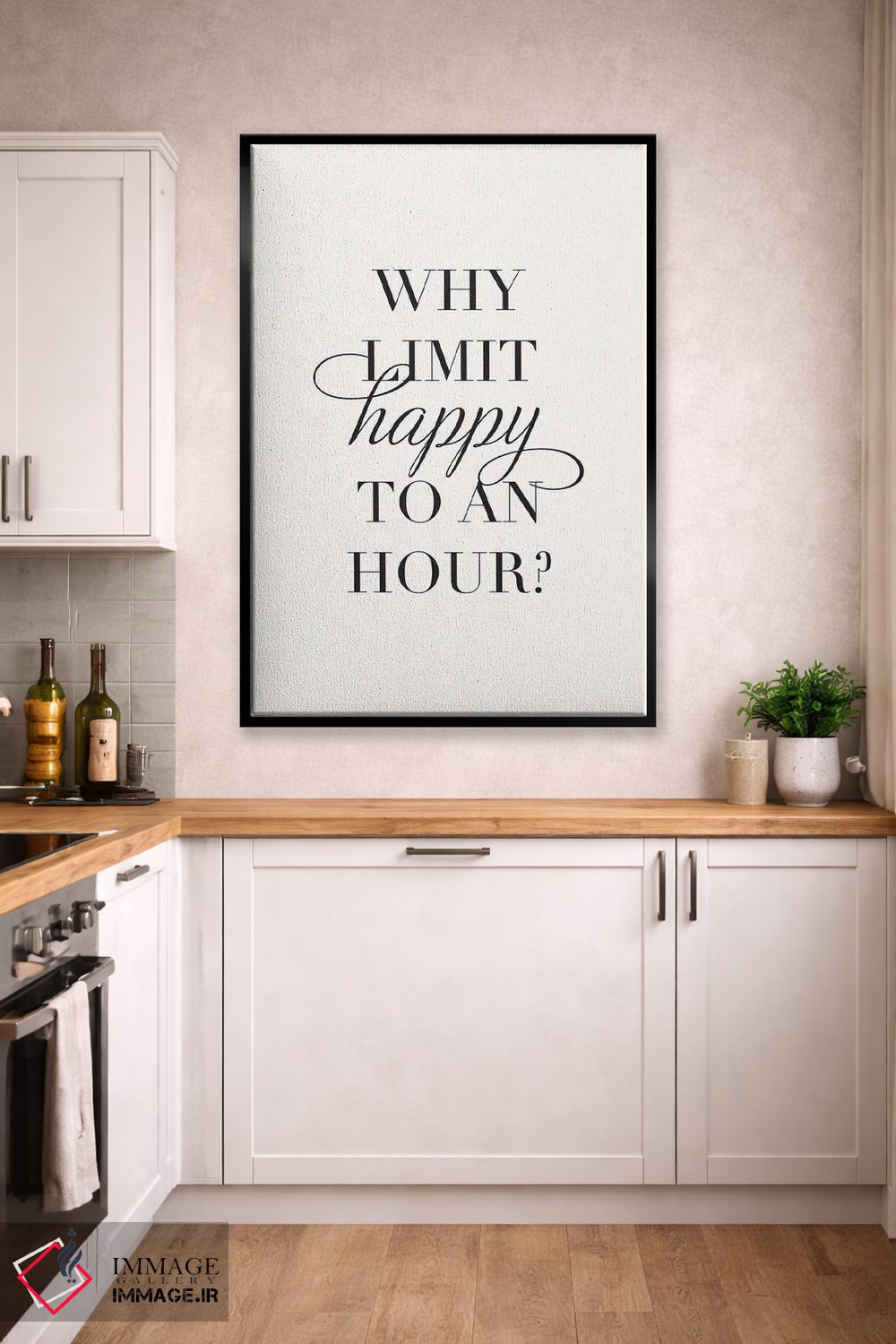 «زمان خوشی (ساعت شاد)» اثرِ «نیکول باسک» با تایپوگرافیِ کنترلشده، روی دیوار خوب مینشیند؛ برای کنار کتابخانه، میز کار یا راهروهای باریک عالی است.