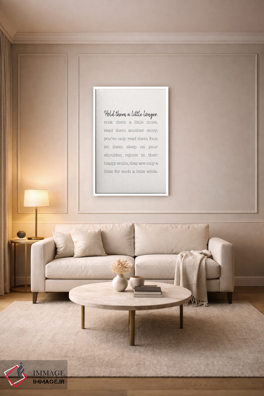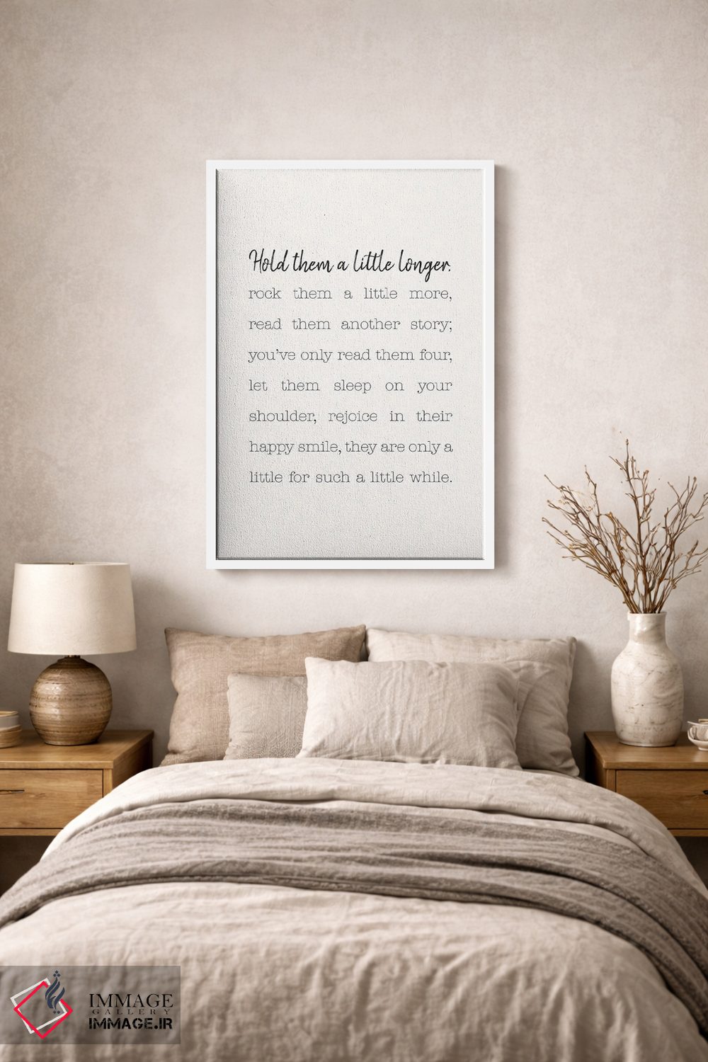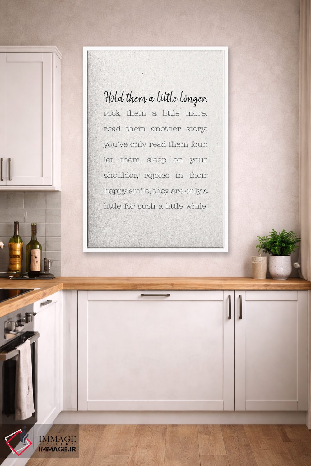 اگر دکور شما بر پایهی متن و تایپ است، «کمی بیشتر بغلشان کن» اثرِ «نیکول باسک» با سبک پرداختِ هنری انتخابی تمیز و کاربردی است.