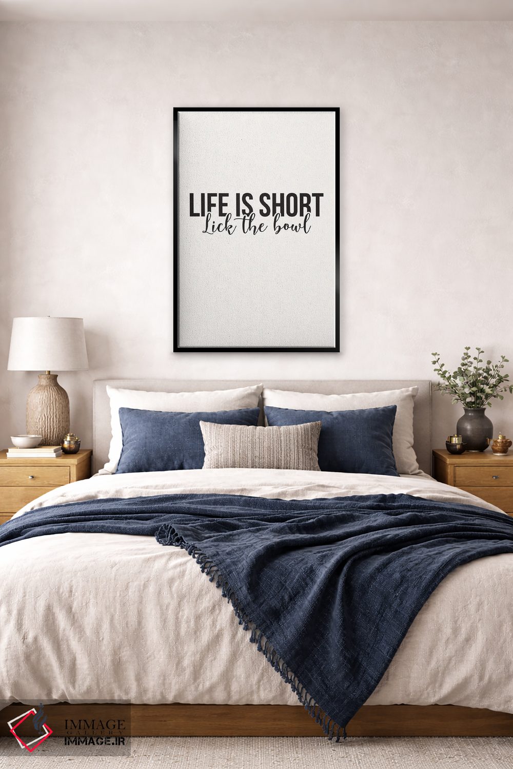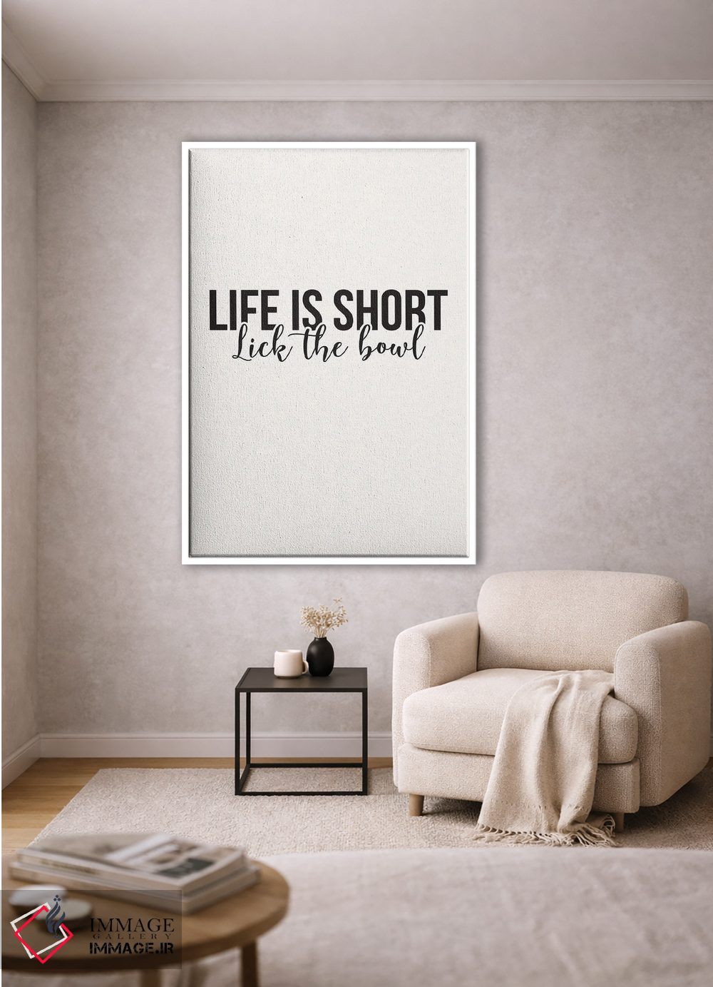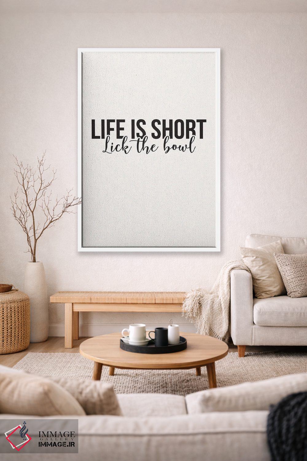 براساس پالت خنثی اثر، قاب مشکی مات (فریم باریک) پیشنهاد اول است و سفید مات (فریم باریک) مکمل. برای سفارشهای پروژهای با ابعاد و قابهای اختصاصی با ایماژ در تماس باشید.