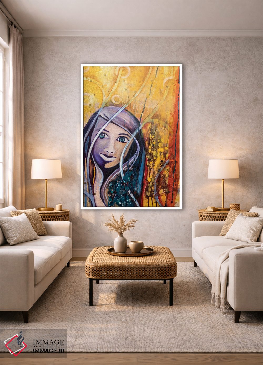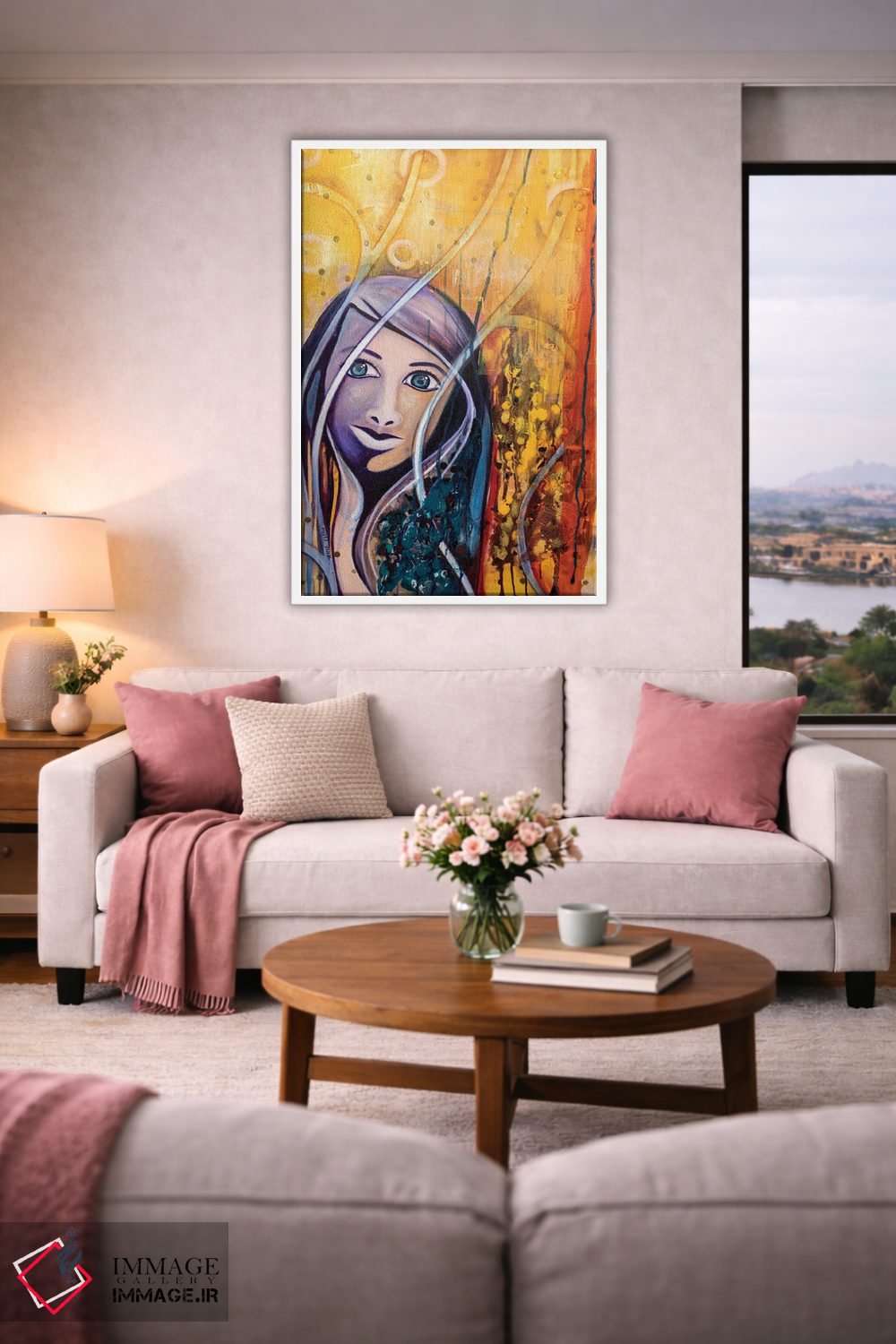 براساس پالت ترکیبی اثر، قاب تیک گرم (چوبی) پیشنهاد اول است و مشکی مات (فریم متوسط) مکمل. برای سفارشهای پروژهای با ابعاد و قابهای اختصاصی با ایماژ در تماس باشید.