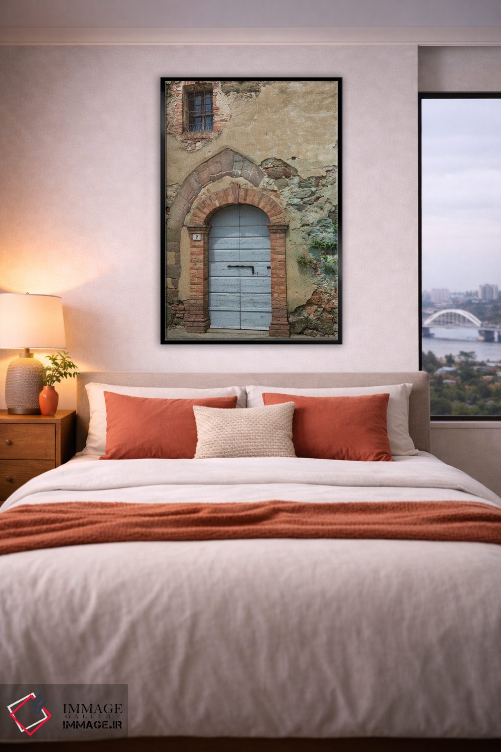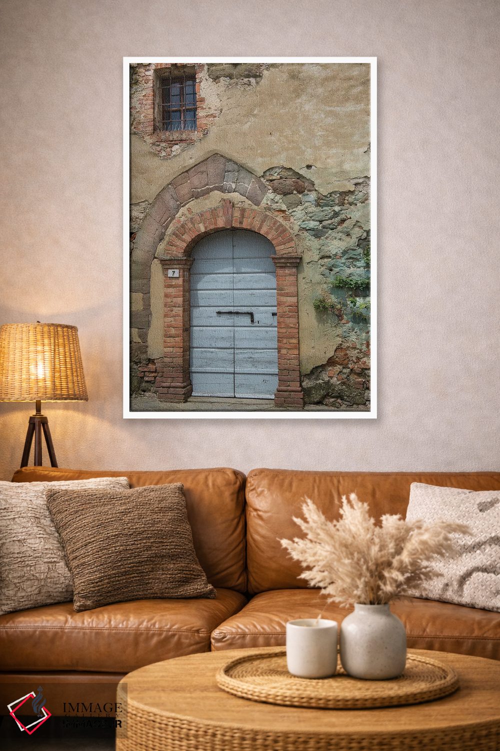 براساس پالت گرم اثر، قاب بلوط روشن (چوبی) پیشنهاد اول است و استخوانی ملایم مکمل. برای سفارشهای پروژهای با ابعاد و قابهای اختصاصی با ایماژ در تماس باشید.