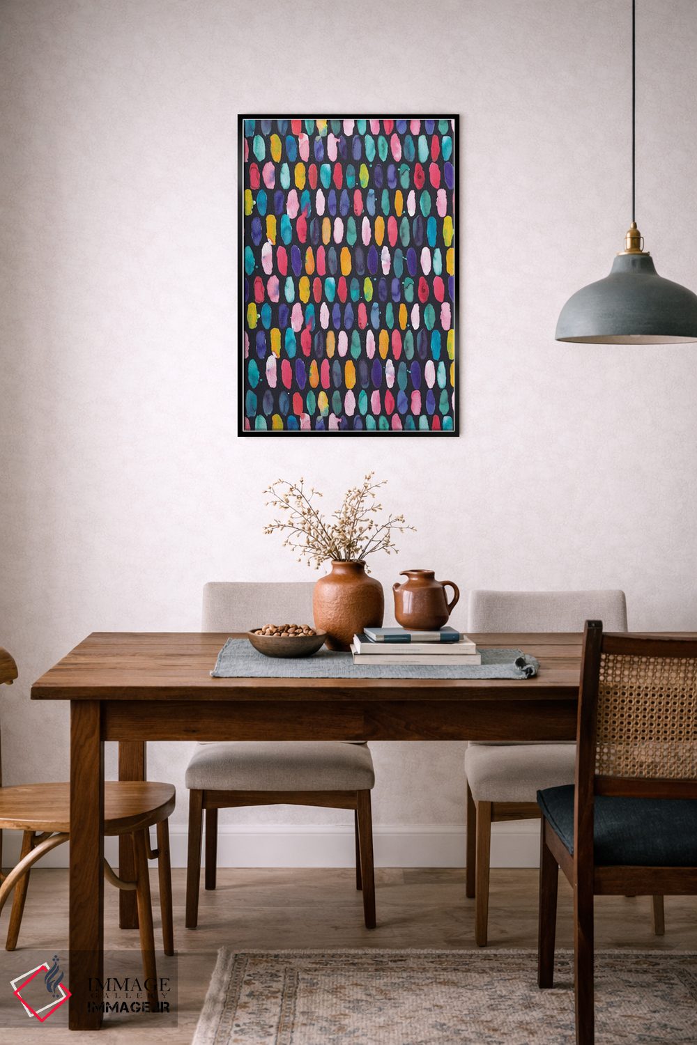 تابلو دکوراتیو قرص های دایره ای چندرنگ و سورمه ای اثر نینولا دیزاین - نمای پرسپکتیو محصول