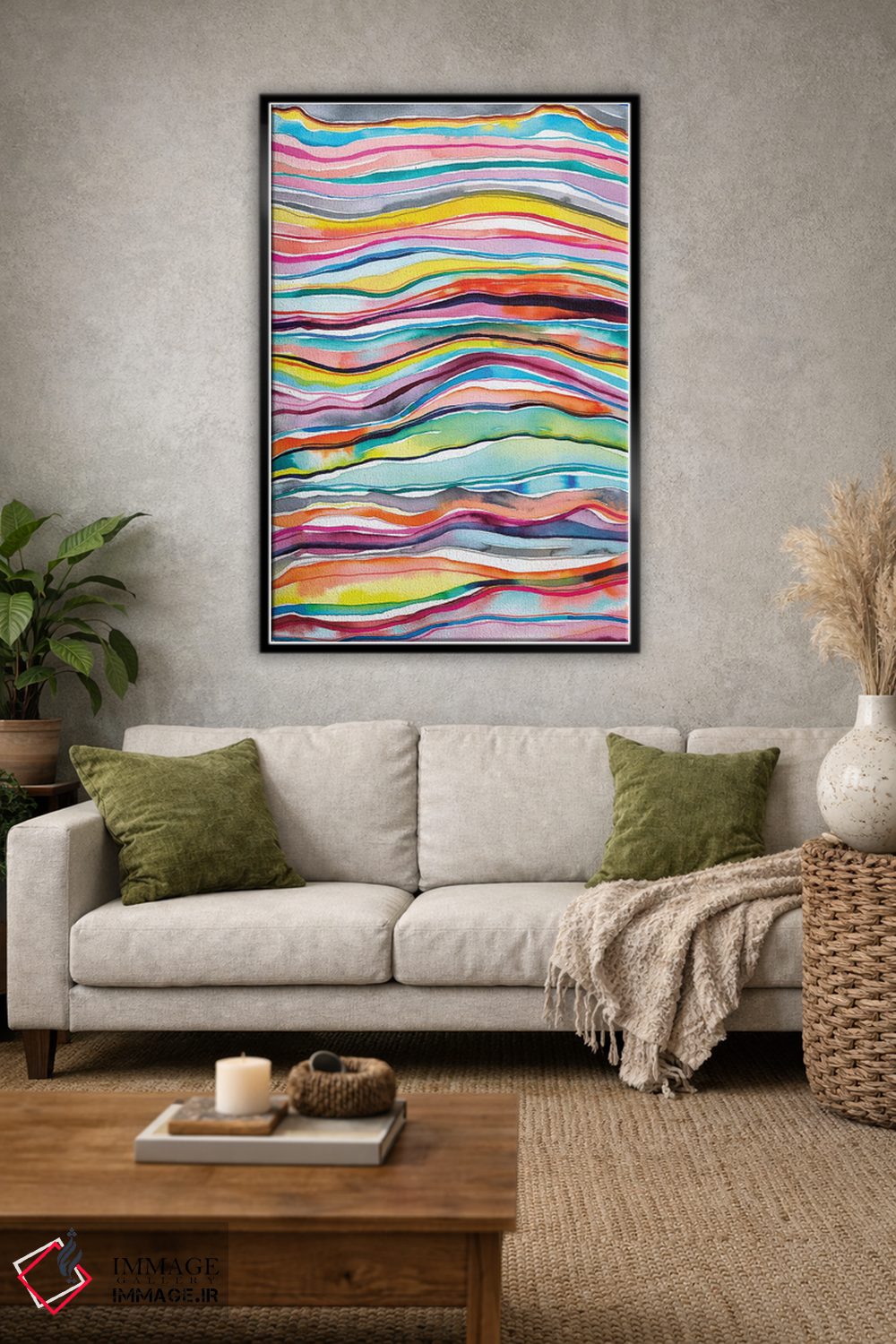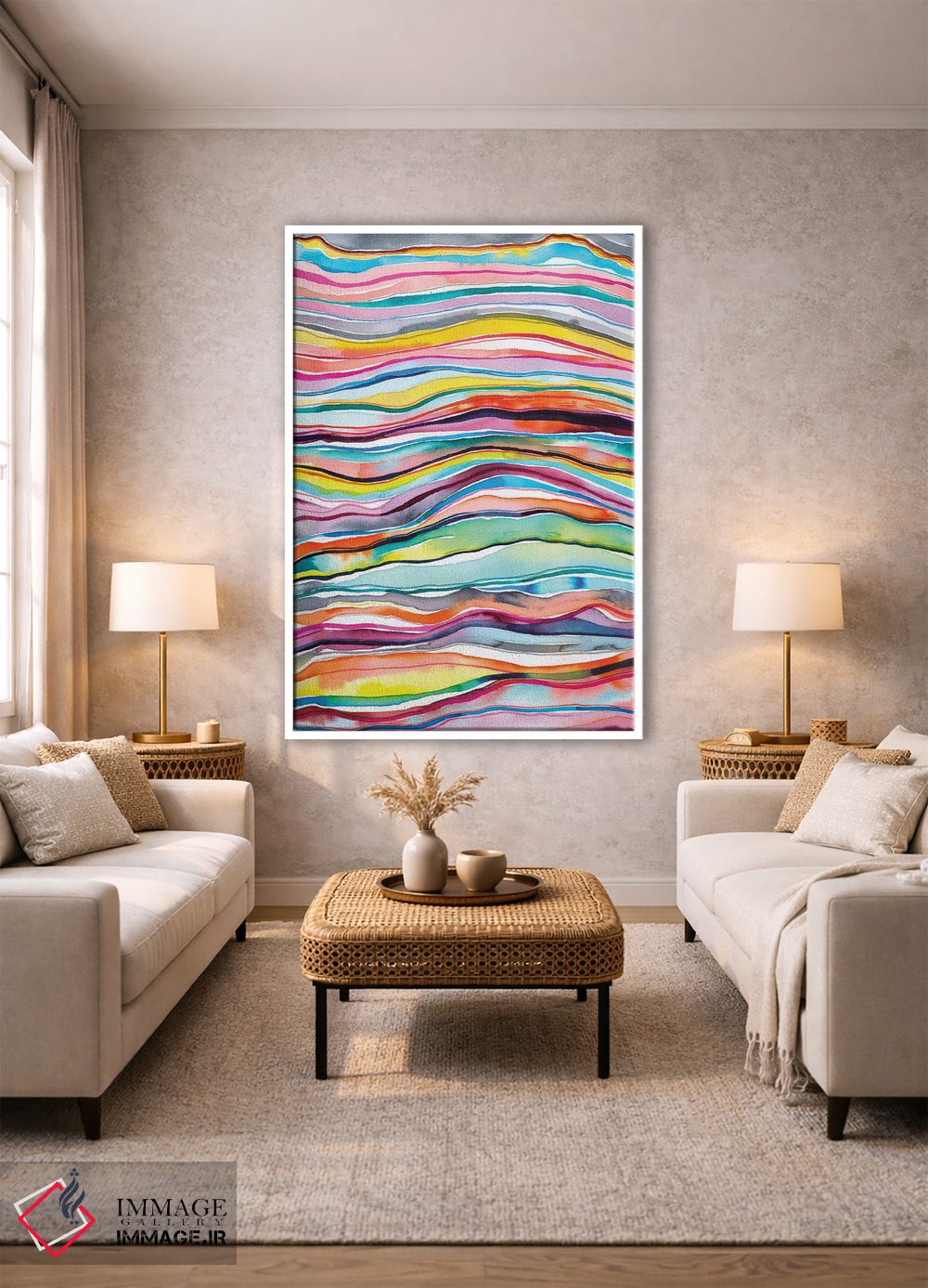 بوم گالری ایماژ طوری طراحی شده که اثر روی دیوار «پرداختشده» و حرفهای دیده شود—نه پرزرقوبرقِ بیپایه؛ بلکه دقیق و خوشپرداخت. بافت ظریف کنواس باعث میشود حس اثر هنری را در نگاه نزدیک نگه میدارد. چاپ جیکلی (Giclée) کمک میکند برای آرتپرینتهای جدی استاندارد رایج است بدون اغراق؛ فقط دقیقتر. حاصل کار، یک تابلو خوشنشین است که هم از دور اثرگذار است و هم از نزدیک خوشخوان؛ و اگر بخواهید، میتوان چیدمان را برای گالریوال هم پیشنهاد داد. در کنار چوب و متریالهای طبیعی، بافت کنواس دلنشینتر دیده میشود.
