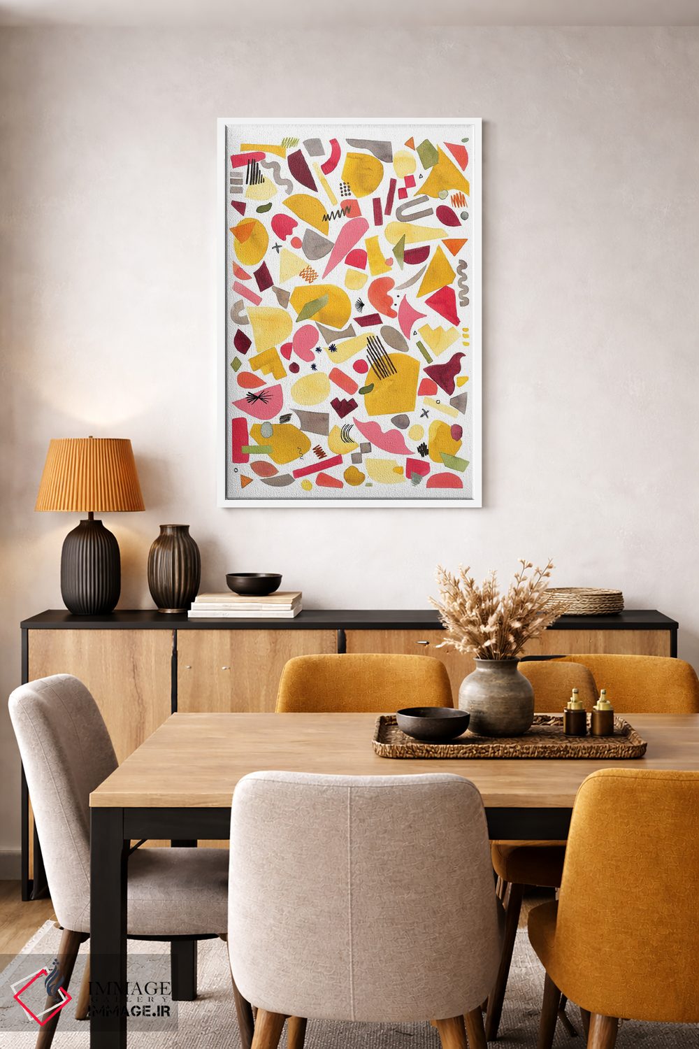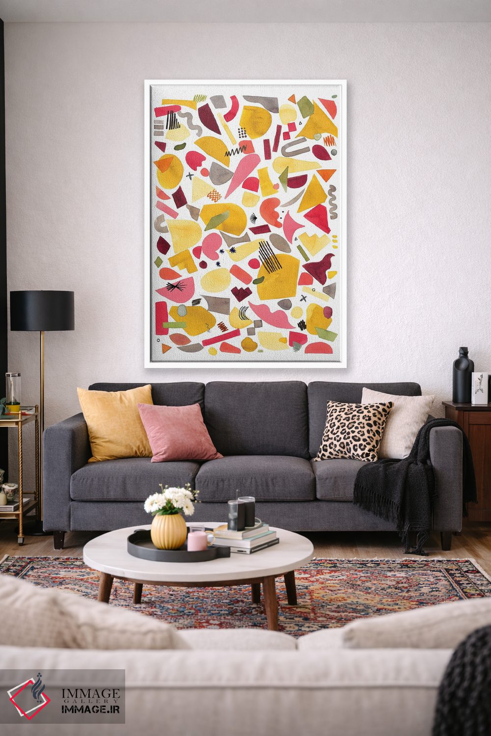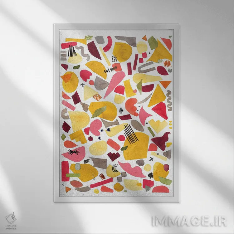 تابلو انتزاعی قطعات هندسی قرمز و زرد اثر نینولا دیزاین