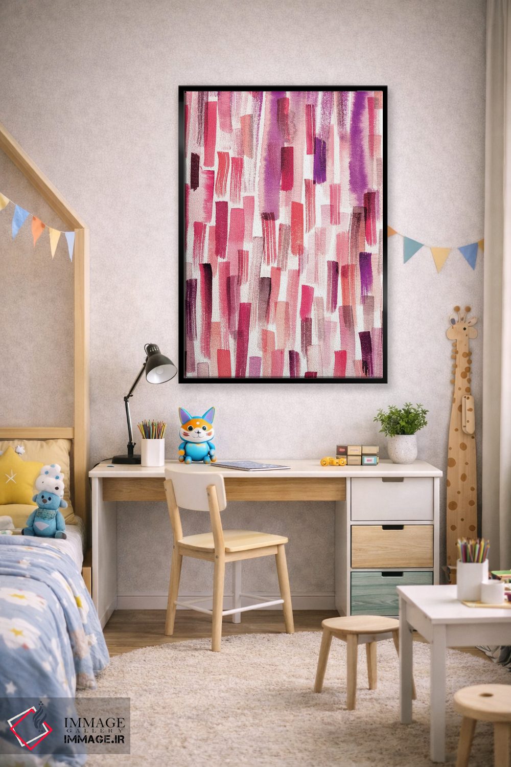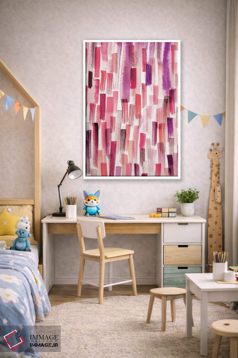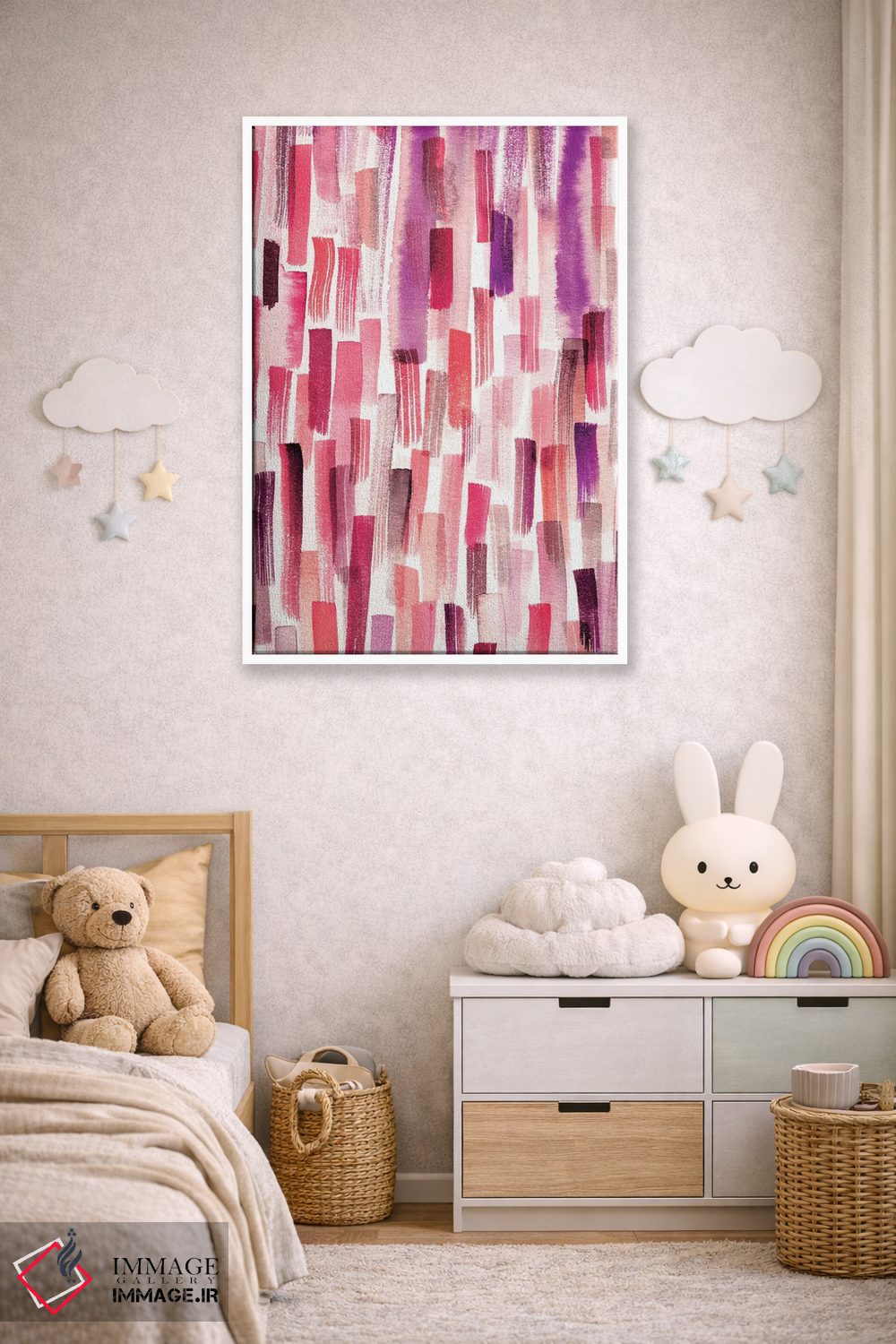 تابلو انتزاعی ضربه قلم های رنگی مرجانی اثر نینولا دیزاین