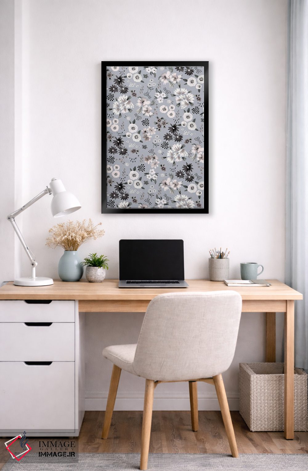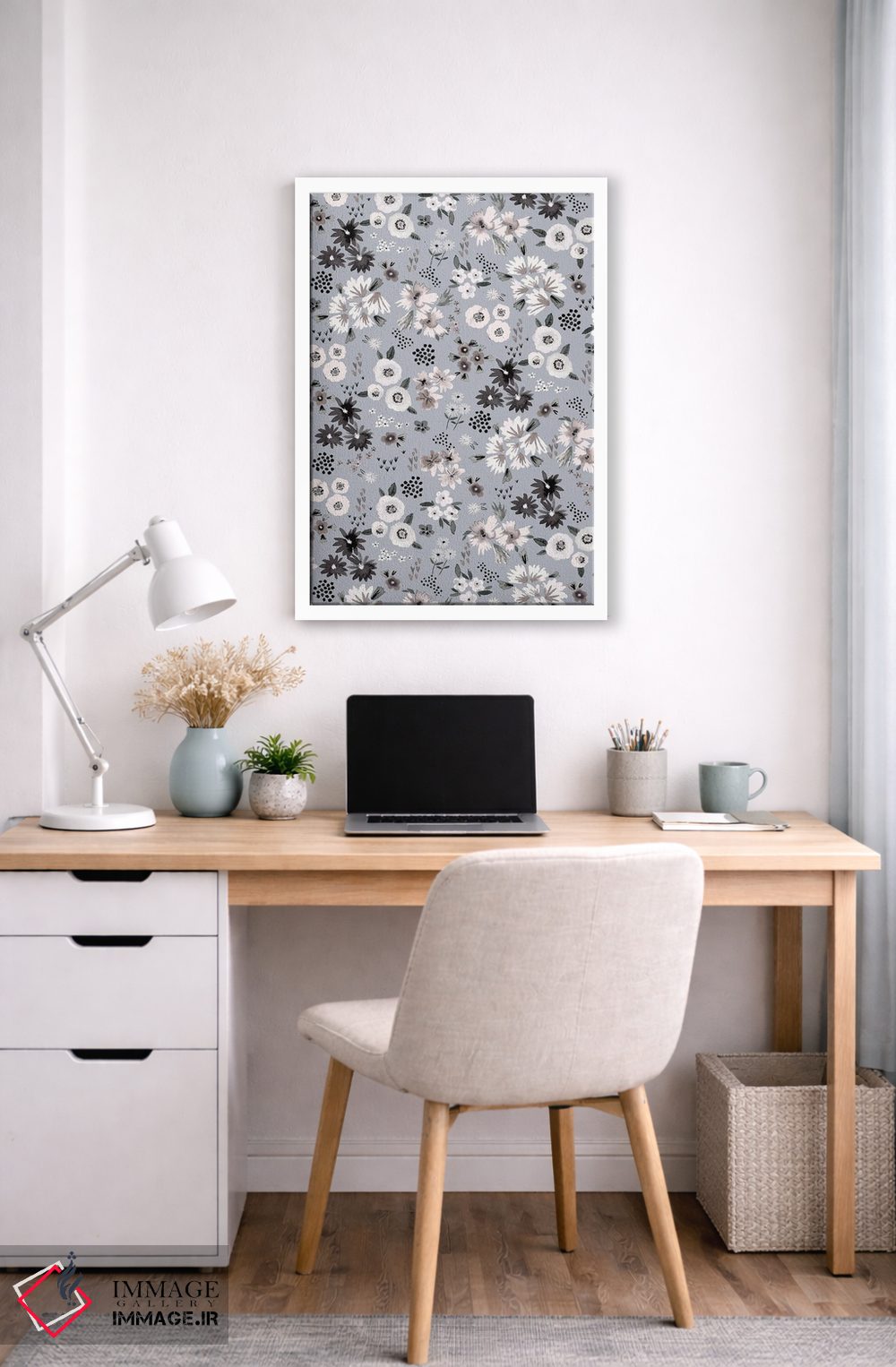 تابلو دکوراتیو گل های کوچک بژ و خاکستری اثر نینولا دیزاین