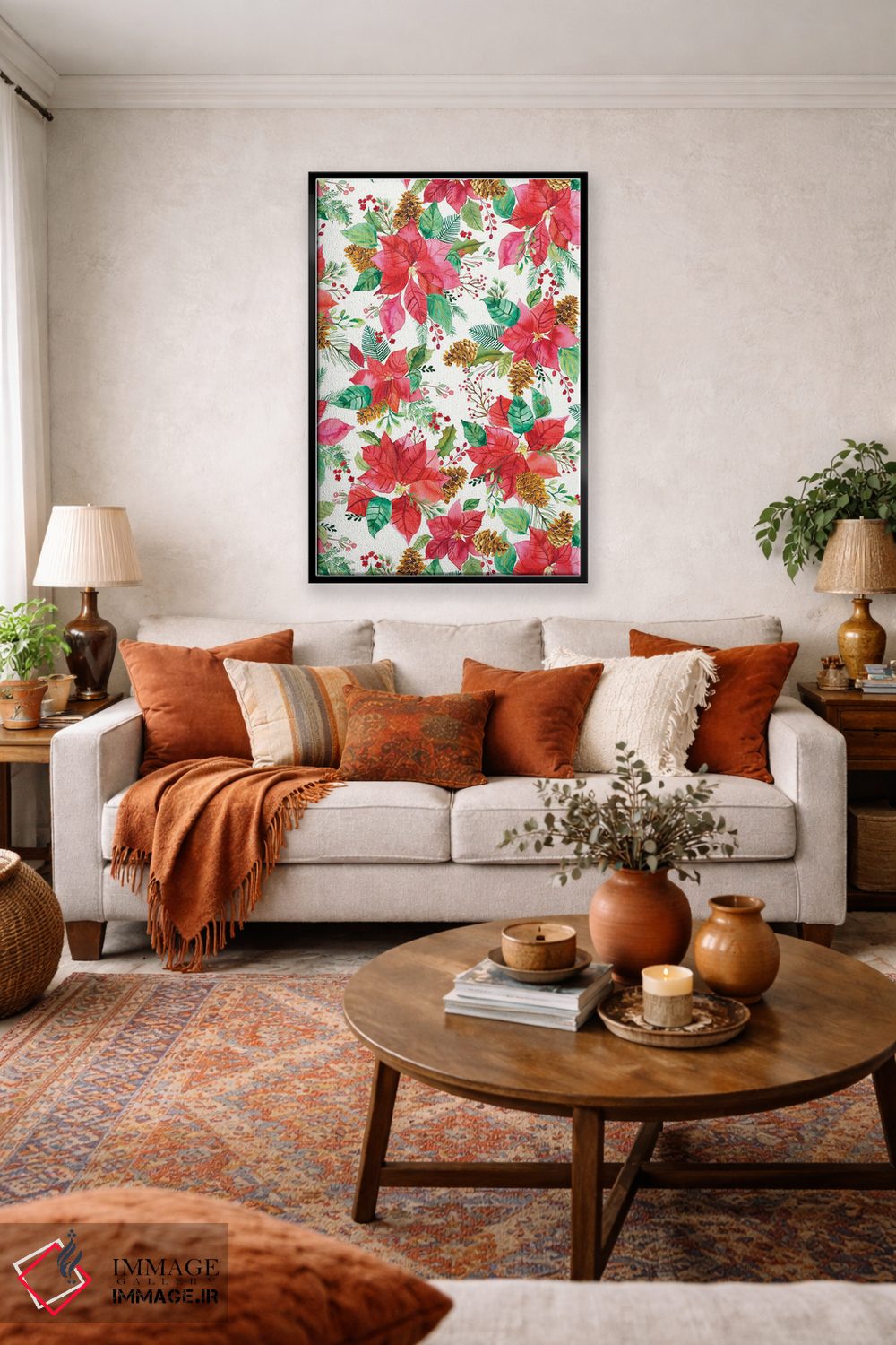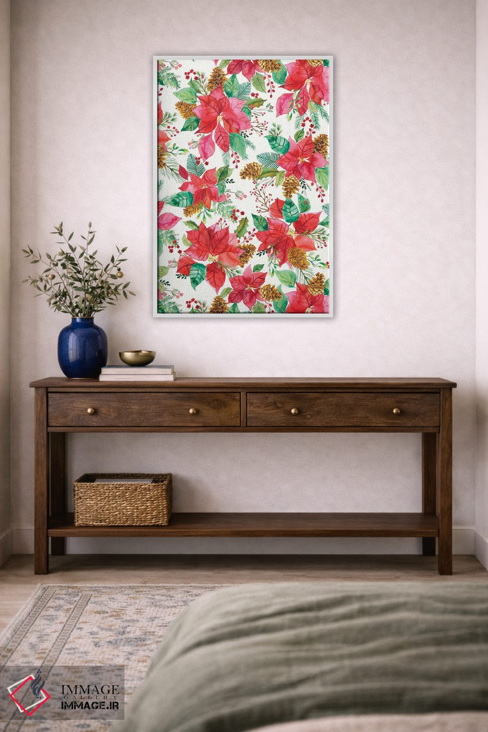 تابلو مدرن دسته گل پوینستیا کریسمس اثر نینولا دیزاین