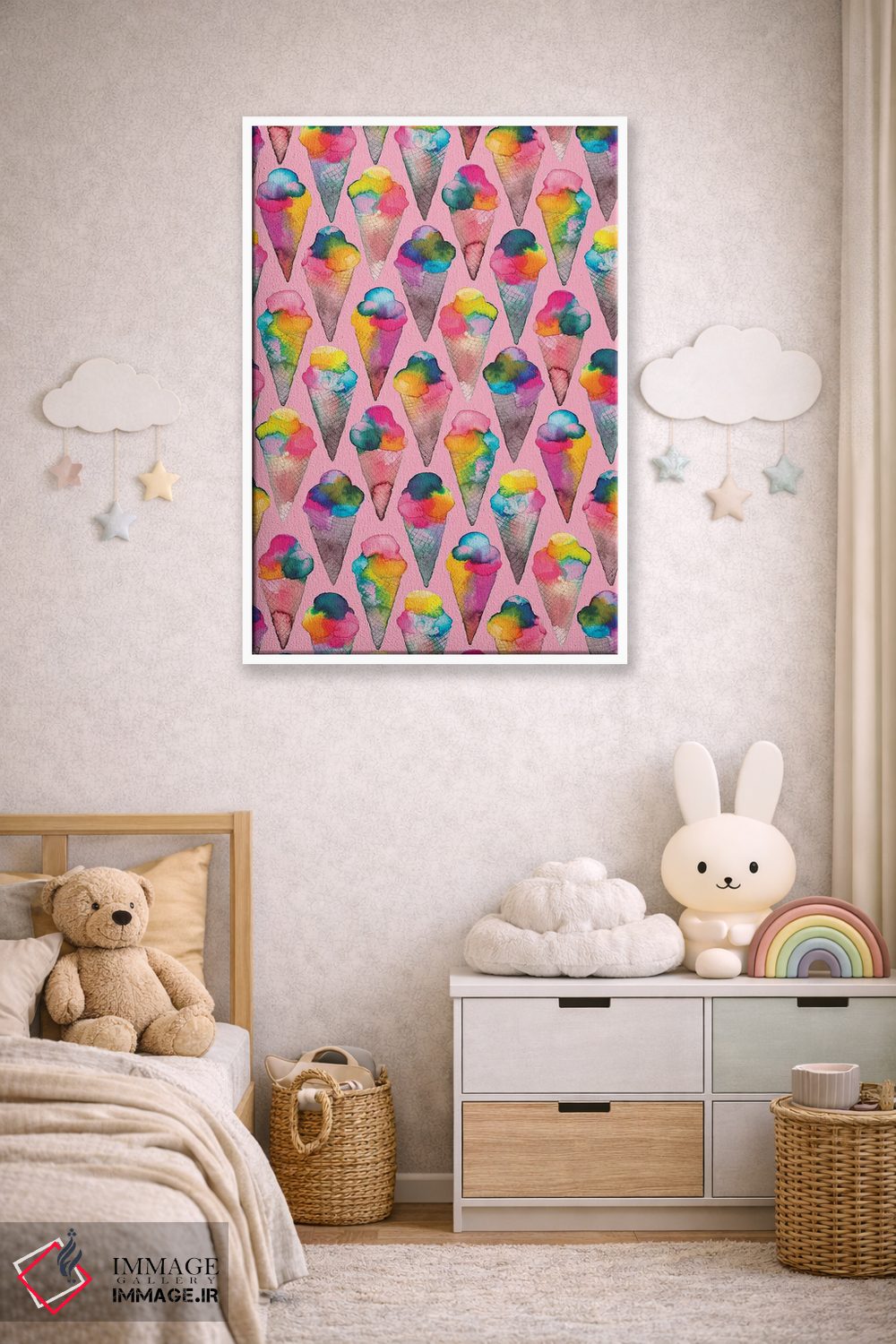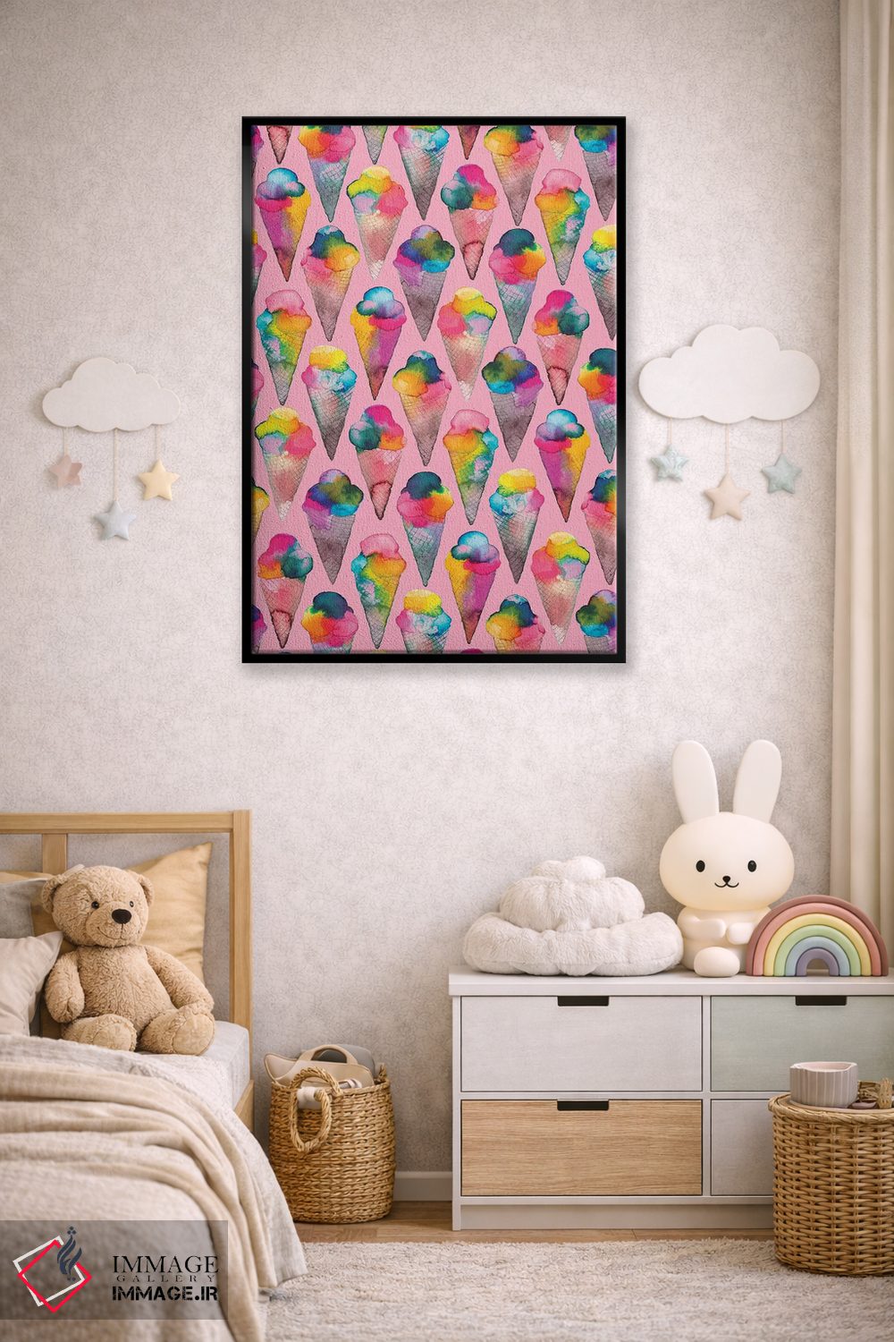 تابلو دکوراتیو بستنی قیفی صورتی اثر نینولا دیزاین