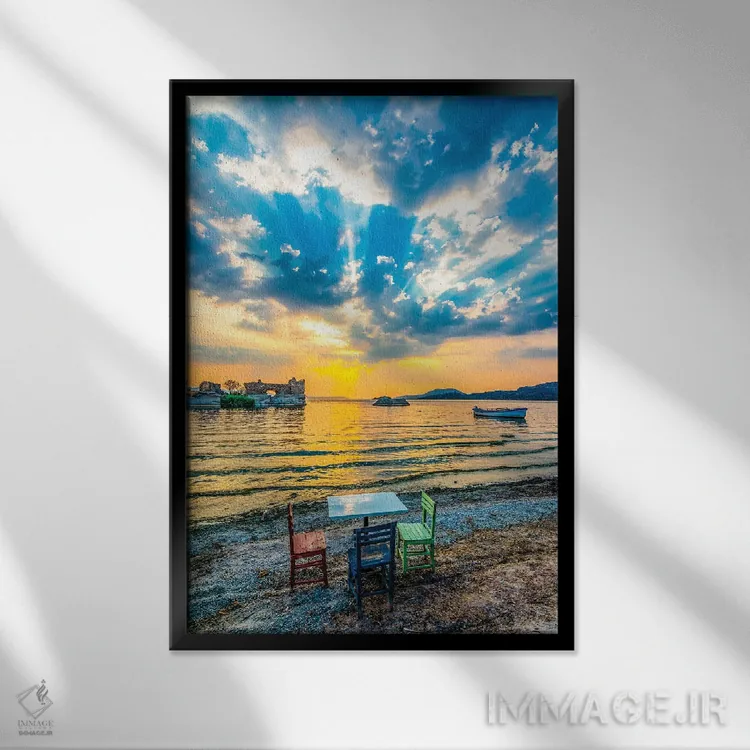 براساس پالت ترکیبی اثر، قاب تیک گرم (چوبی) پیشنهاد اول است و مشکی مات (فریم متوسط) مکمل.
