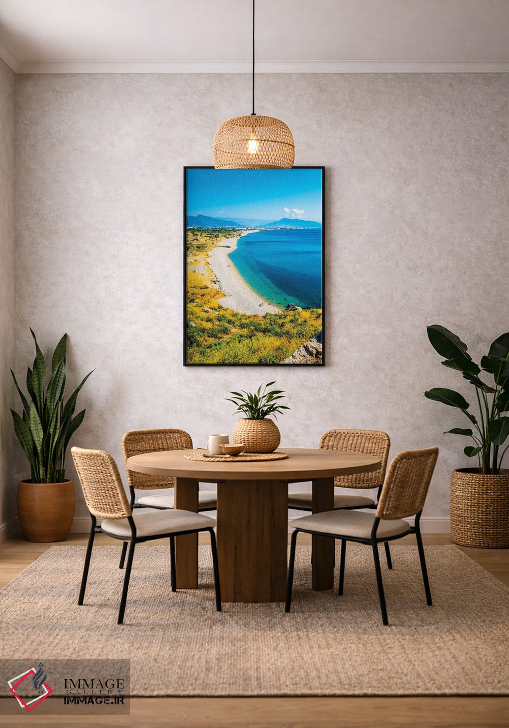 برای دیواری که میخواهید سلیقهتان را آرام و دقیق نشان بدهد، «دریای مدیترانه» اثرِ «نجدت دوزن» جلوهٔ اتاق را یک پله حرفهایتر میکند؛ برای فضاهایی با نور طبیعی پیشنهاد میشود. برای پروژههای طراحی داخلی هم گزینهای قابل اتکاست.