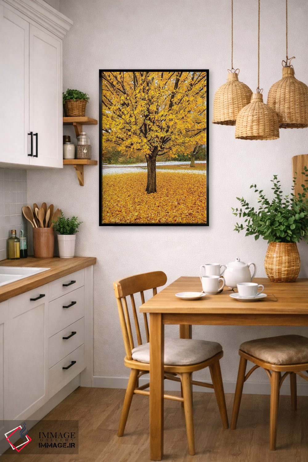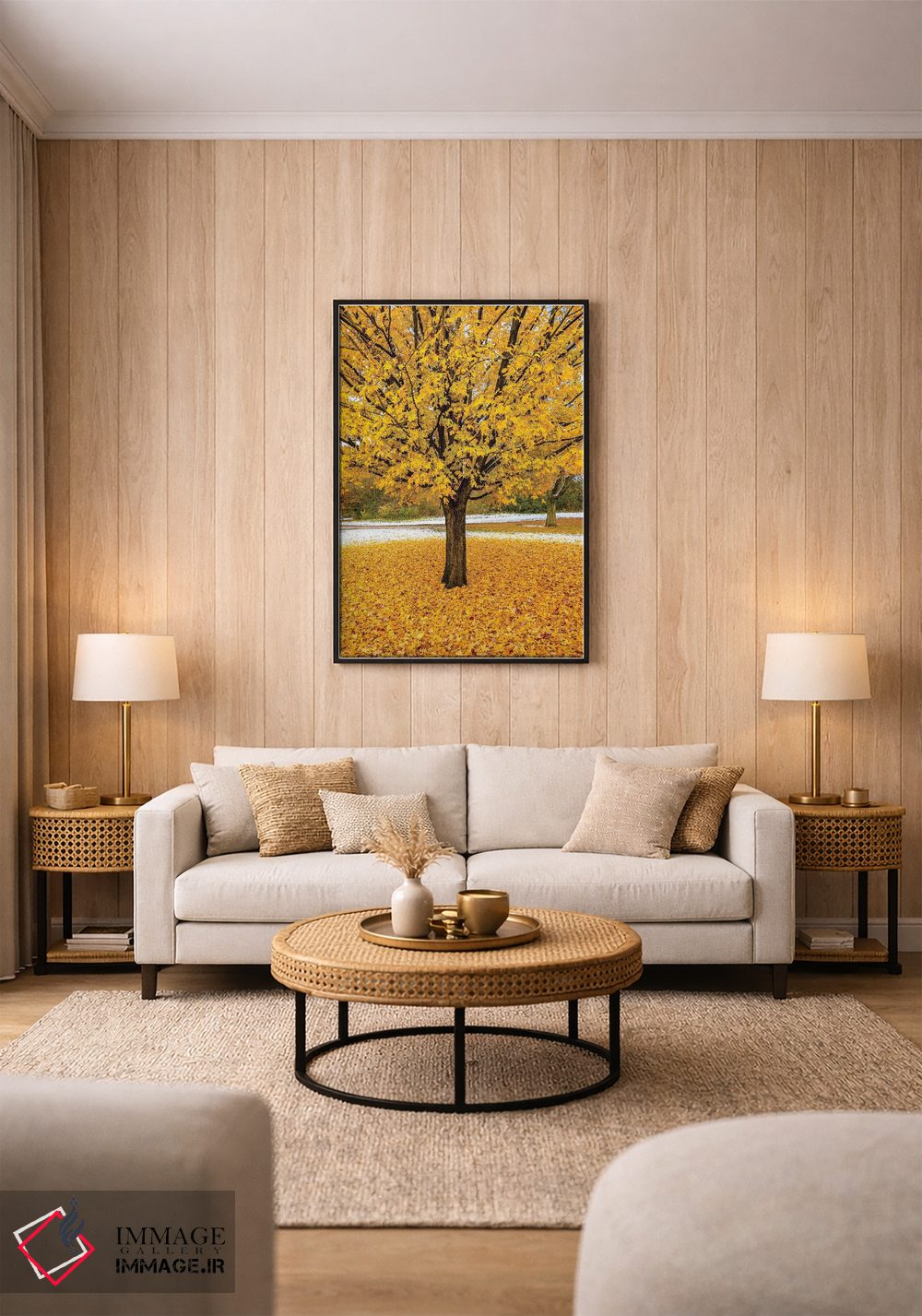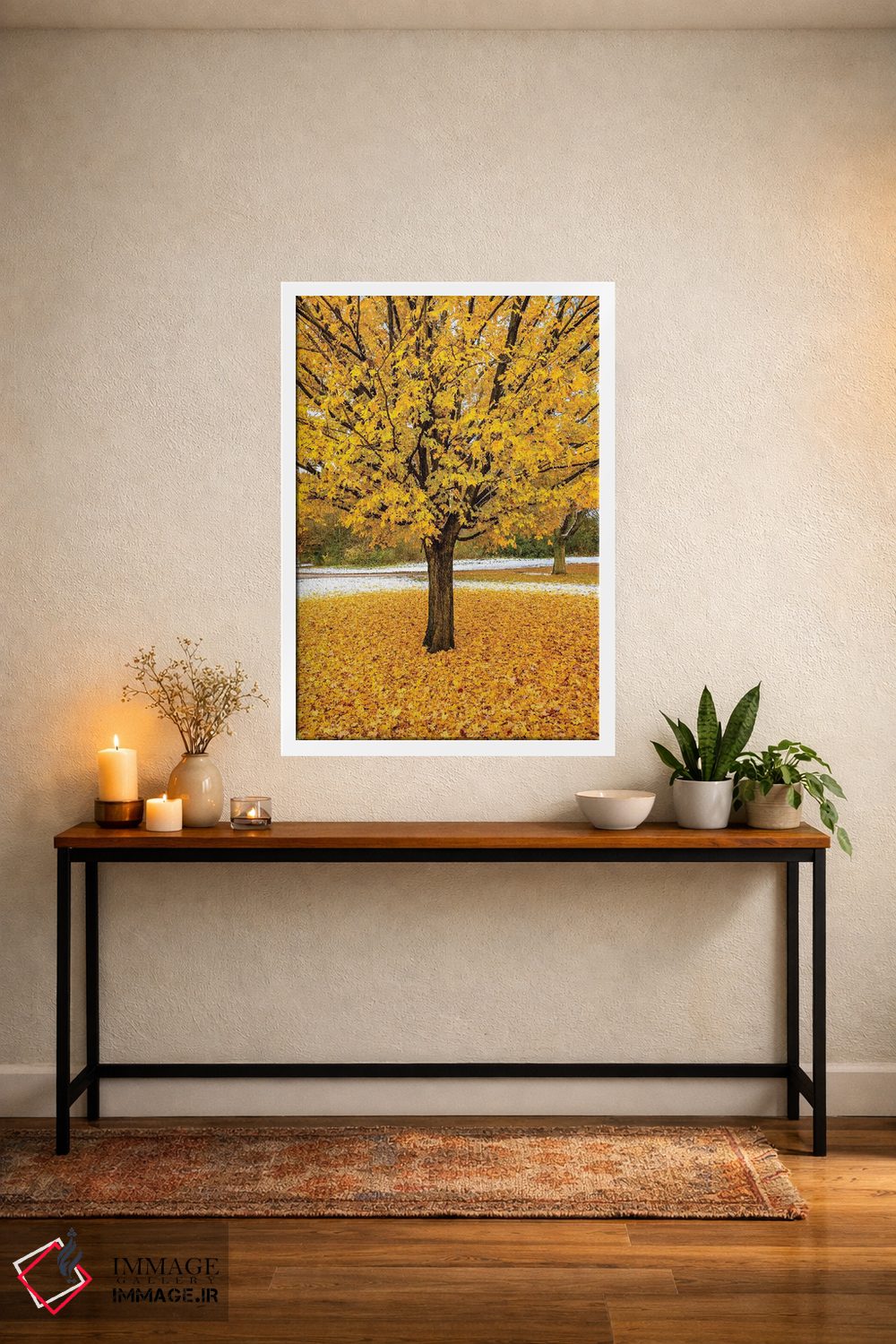برای دیواری که میخواهید سلیقهتان را آرام و دقیق نشان بدهد، «شاخ و برگ زرد» اثرِ «نجدت دوزن» یک «نقطهٔ مکث» خوشسلیقه میسازد؛ برای راهروها و ورودیهای مینیمال پیشنهاد میشود. با مبلمان خنثی، تضاد دلنشینی میسازد.