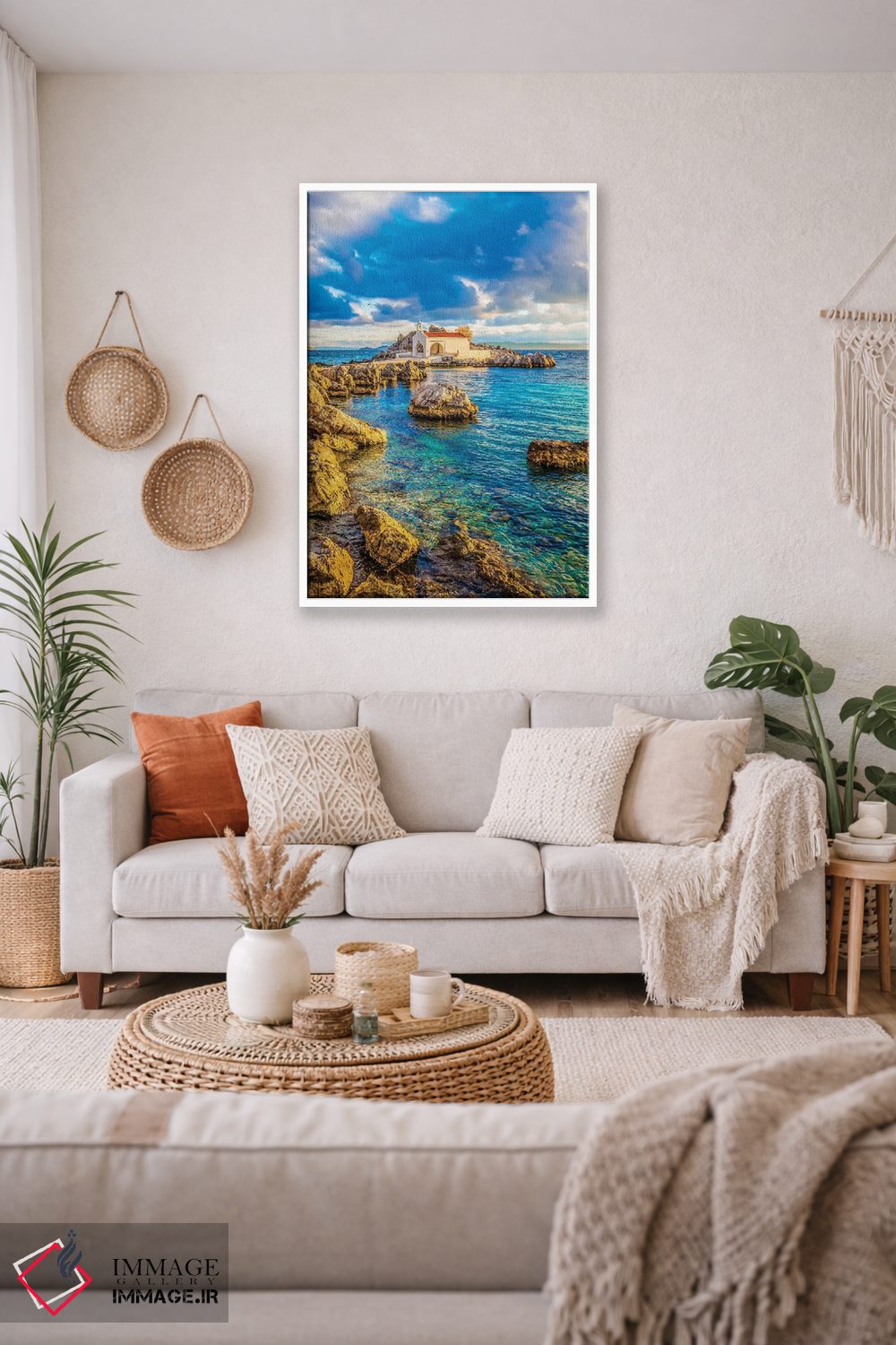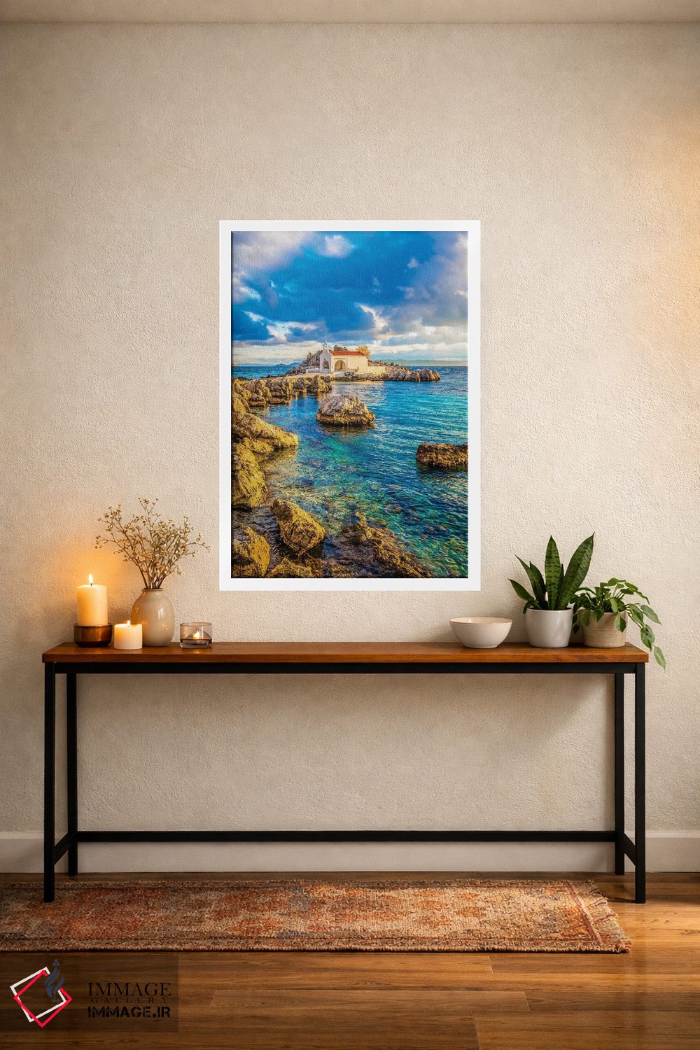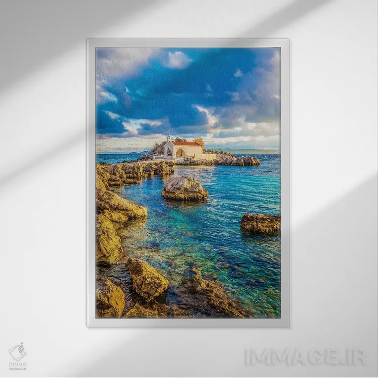 تابلو دکوراتیو جزیره خیوس اثر نجدت دوزن - نمای قاب‌دار سفید