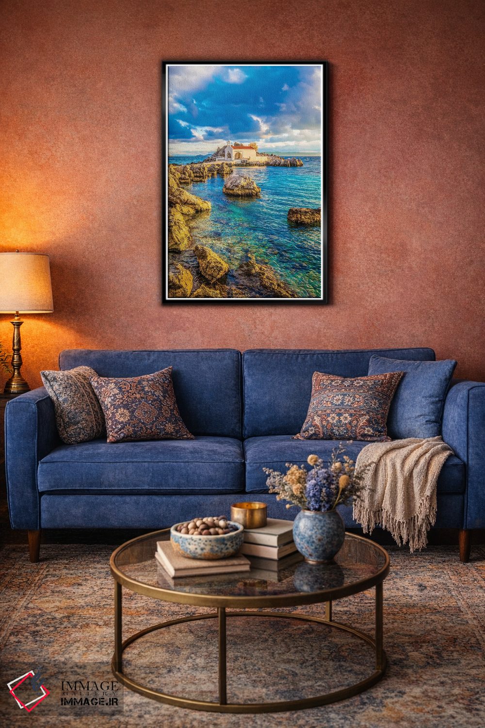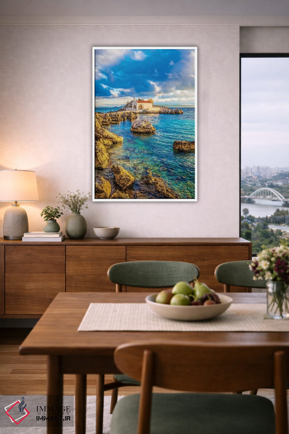 تابلو دکوراتیو جزیره خیوس اثر نجدت دوزن - نمای روبه‌رو روی دیوار