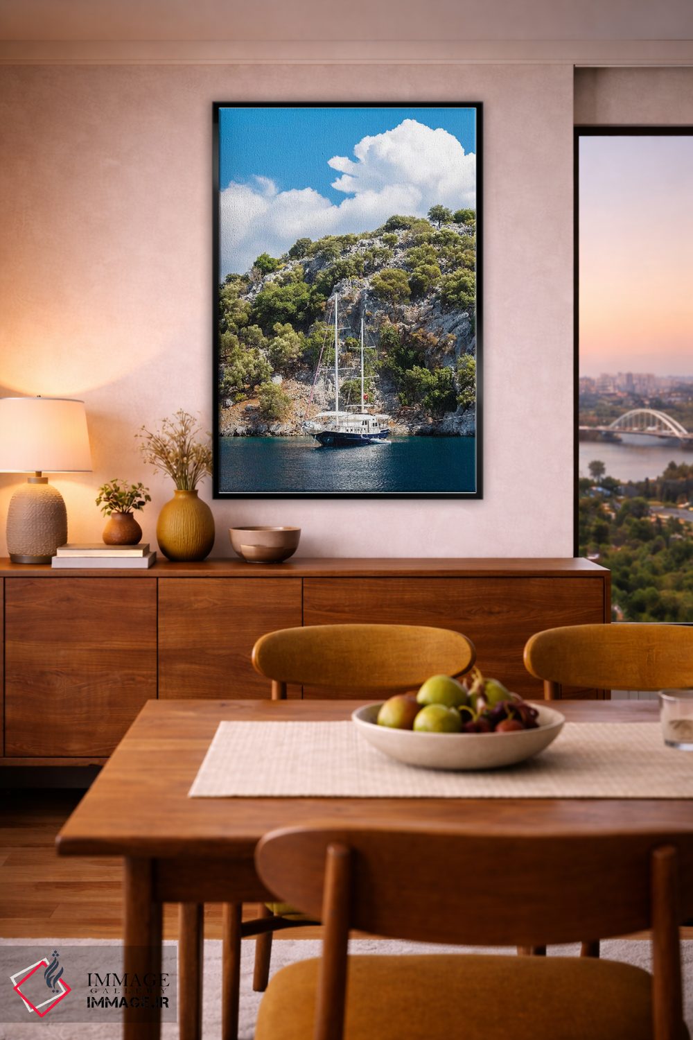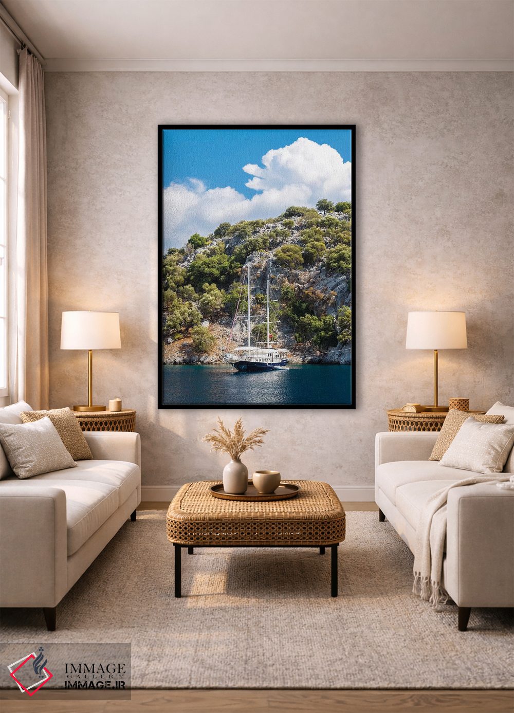 بوم گالری ایماژ نسخهی دکوراتیوِ سطحبالا از یک اثر هنری است؛ روی کنواس بدون اسید با بافت ظریف و یکنواخت با چاپ هنری به استاندارد جیکلی (Giclée) با رنگدانههای آرشیوی و سیستم رنگ دقیق؛ حس نهایی نزدیکتر به ارائهی گالریوار است؛ نه صرفاً یک تصویر. اسمبل تمیز و آمادهی نصب؛ کشیدگی استاندارد روی کلاف و یراق مناسب.
