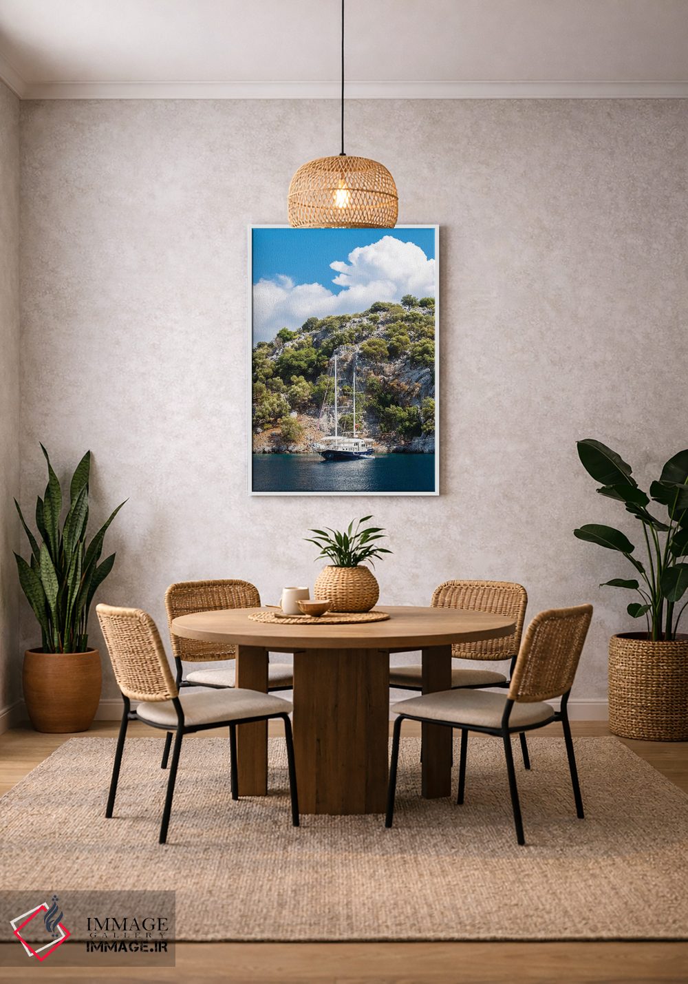بوم گالری ایماژ طوری طراحی شده که اثر روی دیوار «پرداختشده» و حرفهای دیده شود—نه پرزرقوبرقِ بیپایه؛ بلکه دقیق و خوشپرداخت. بافت ظریف کنواس کمک میکند حس اثر هنری را در نگاه نزدیک نگه میدارد و نتیجه را یکدستتر میکند. با چاپ جیکلی (Giclée)، برای آرتپرینتهای جدی استاندارد رایج است. در نهایت، نتیجه چیزی شبیه تفاوت نسخهی معمولی با نسخهی باکیفیتتر است: نه رنگِ بیشتر، بلکه پرداخت بهتر.