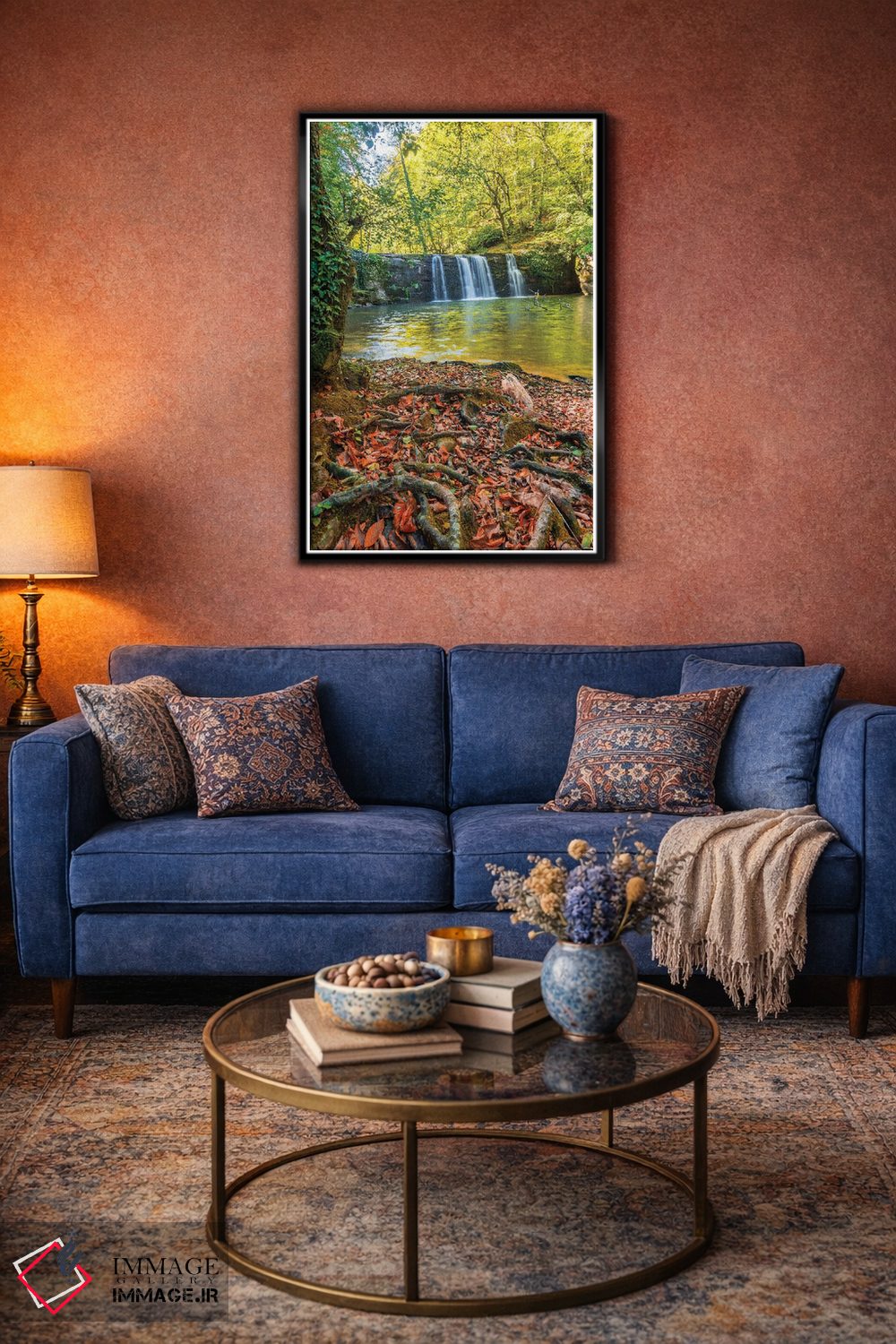 اگر میخواهید اثر برجستهتر شود، قرمز را در فرش یا پرده (بهصورت خیلی کم) در نظر بگیرید تا ترکیببندی قویتر شود. انتخاب قاب هم میتواند این اکسنت را تقویت کند.