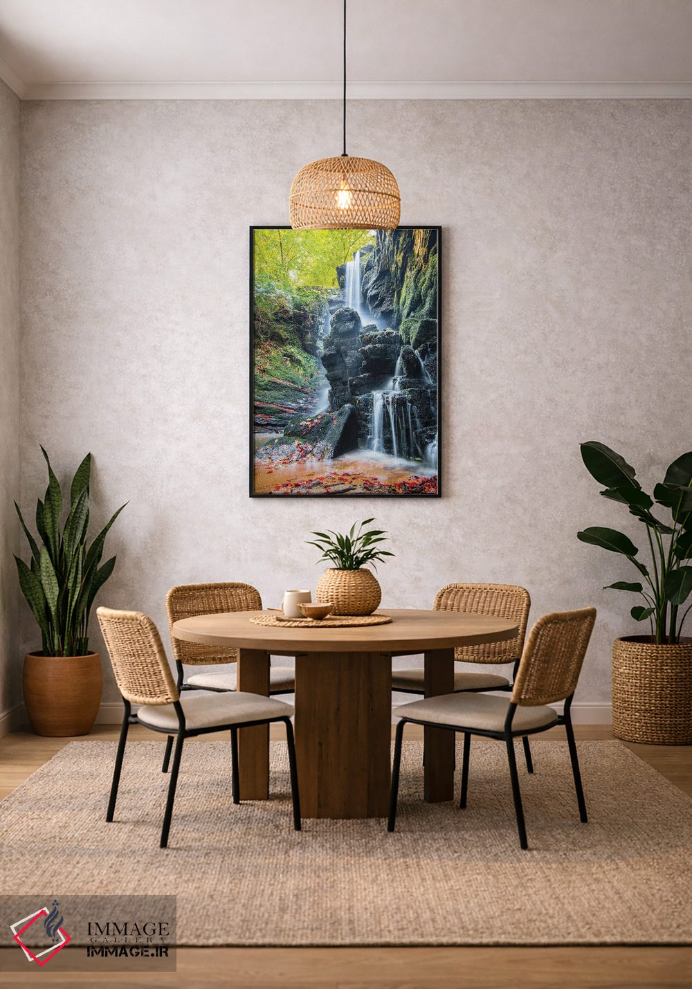 برای دیواری که میخواهید سلیقهتان را آرام و دقیق نشان بدهد، «آبشار پلکانی (دوم)» اثرِ «نجدت دوزن» فضا را روشنتر و زندهتر نشان میدهد؛ برای خانههایی که به هماهنگی رنگها اهمیت میدهند پیشنهاد میشود. در کنار گیاهان آپارتمانی هم جلوهٔ لطیفی پیدا میکند.