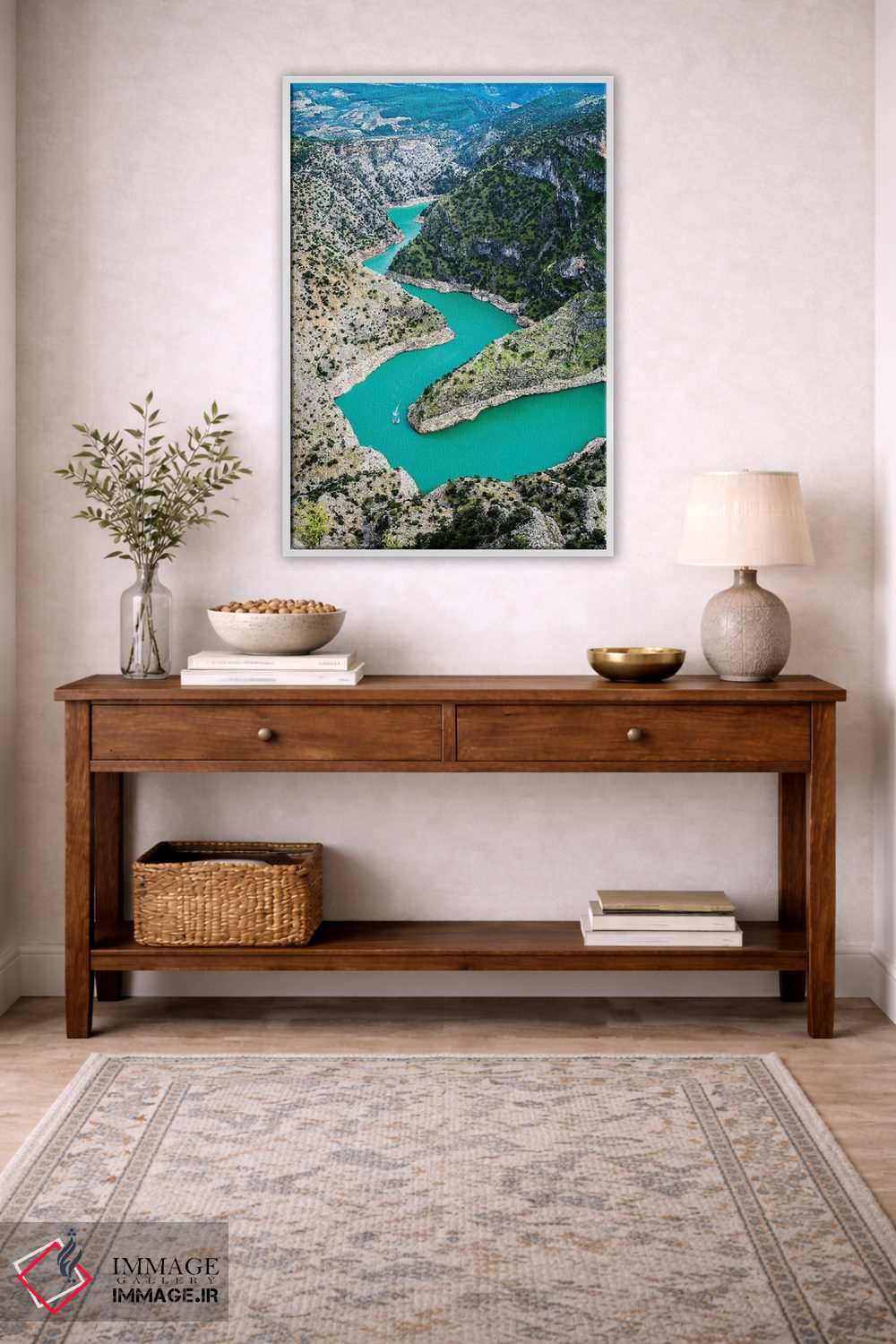 بوم گالری ایماژ طوری طراحی شده که اثر روی دیوار «پرداختشده» و حرفهای دیده شود—نه پرزرقوبرقِ بیپایه؛ بلکه دقیق و خوشپرداخت. بافت ظریف کنواس باعث میشود حس اثر هنری را در نگاه نزدیک نگه میدارد. قابپذیری باعث میشود هماهنگی قاب با پالت رنگ جلوه را تقویت میکند بدون اغراق؛ فقط دقیقتر. اگر دوست دارید قاب هم اضافه شود، میتوانید از گزینههای سایت استفاده کنید یا برای انتخاب سفارشی هماهنگ کنید؛ اگر فضا مینیمال است، همین پرداخت تمیز کافی است.