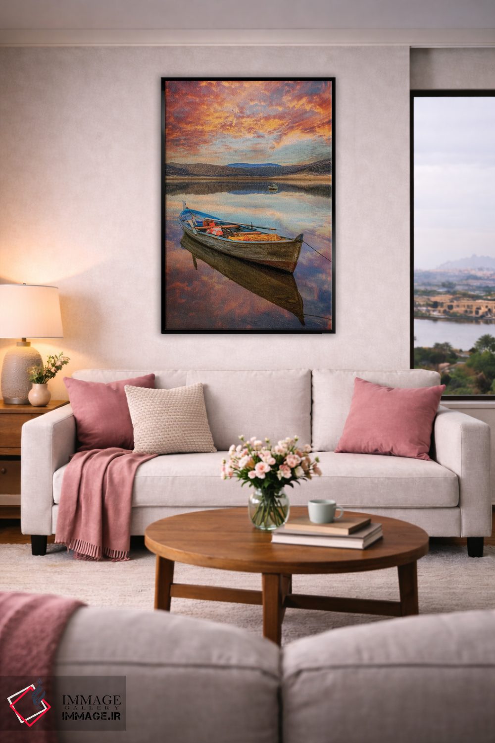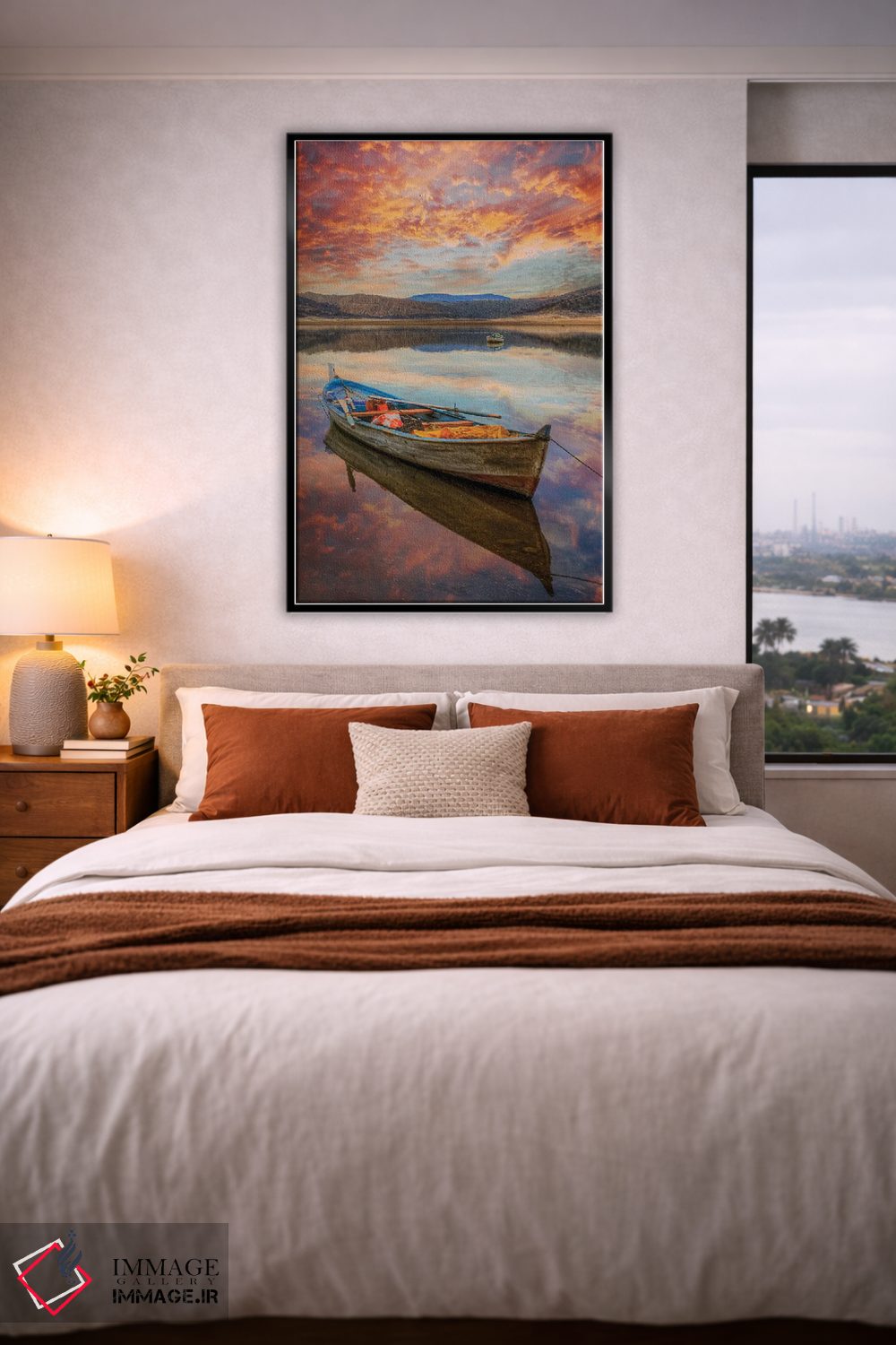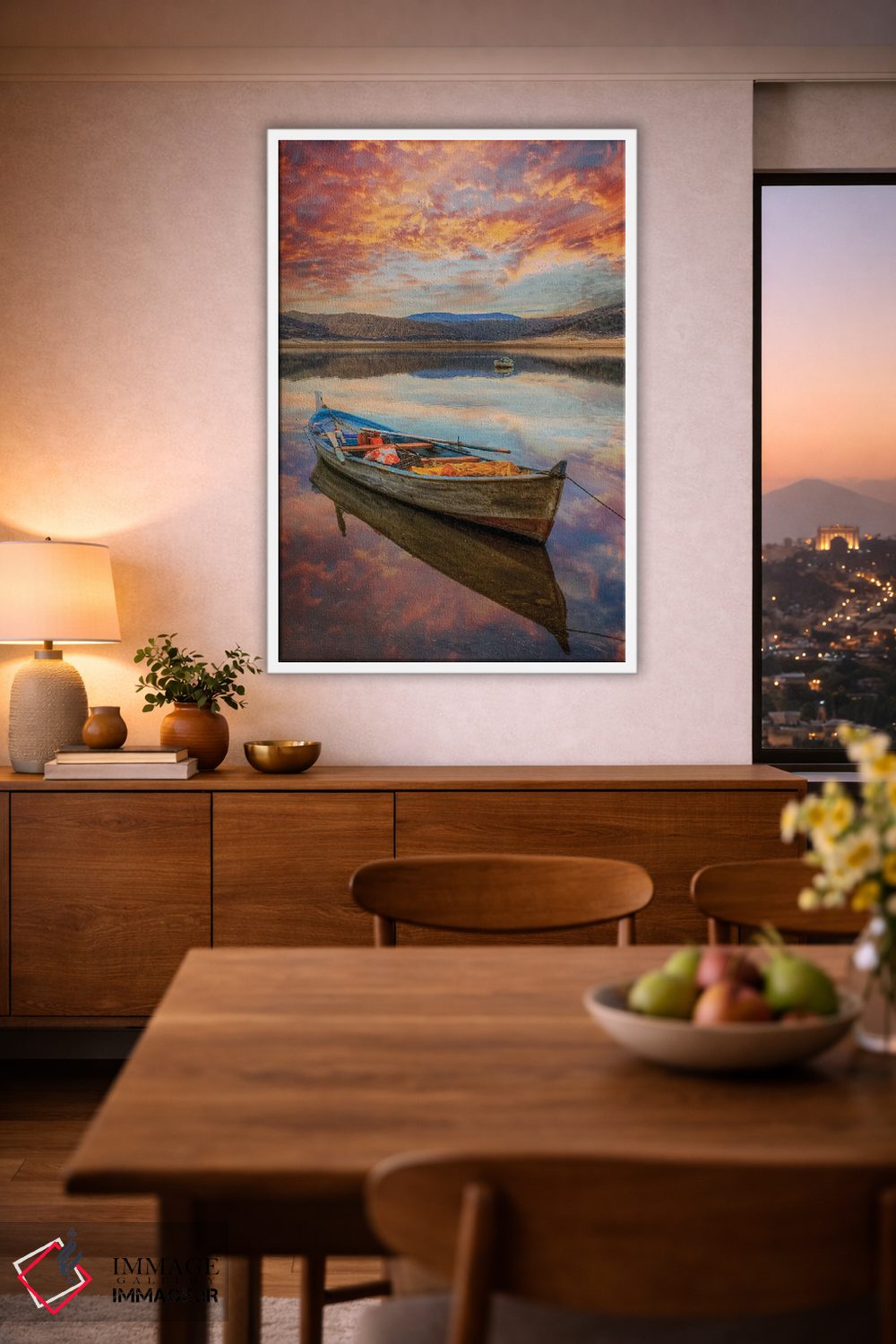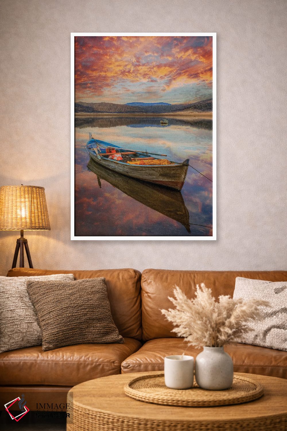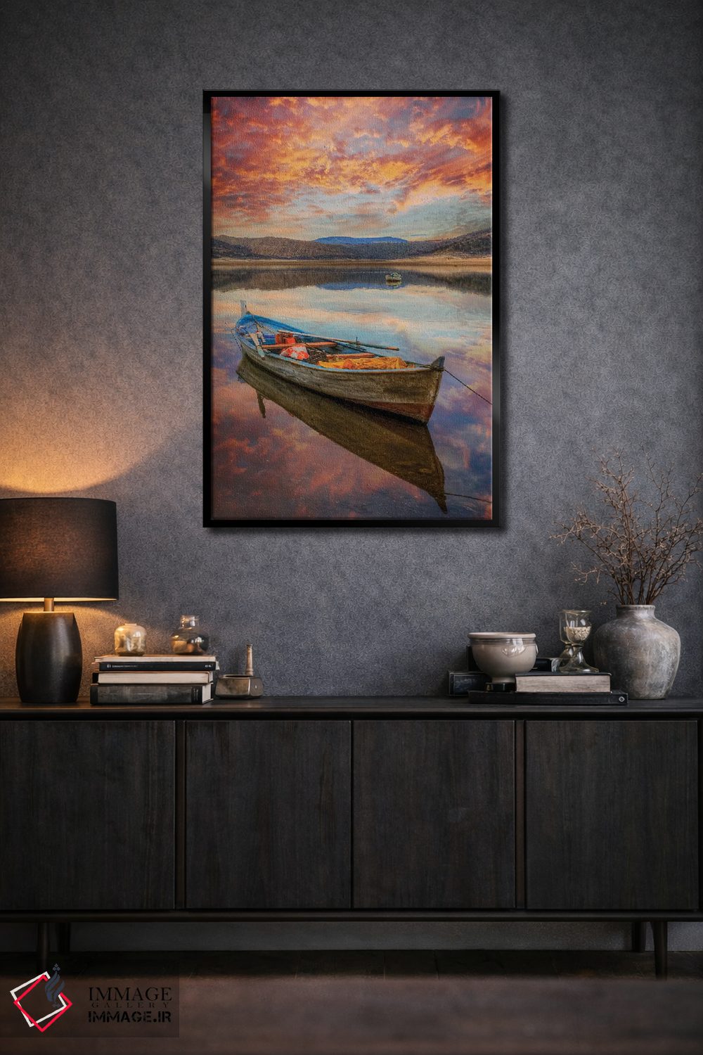 تابلو دکوراتیو دریاچه III اثر نجدت دوزن - نمای روبه‌رو روی دیوار