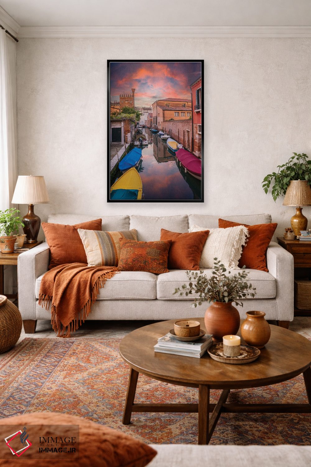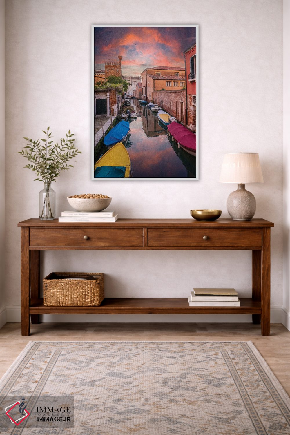 برای فضایی که میخواهید مرتبتر و حرفهایتر دیده شود، «غروب کانال در ونیز» اثرِ «نجدت دوزن» دیوار را از تزئین به «حضور» تبدیل میکند؛ برای دکورهای کلاسیک با چوب و پارچه پیشنهاد میشود. فضا را شلوغ نمیکند؛ فقط دقیقترش میکند.