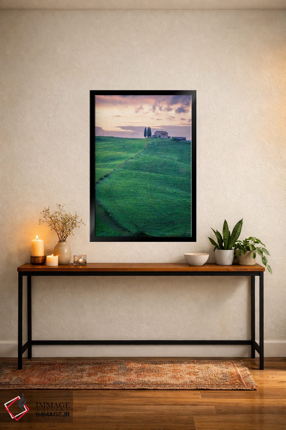 اگر میخواهید دیوار از «پسزمینه» بیرون بیاید، «منظره توسکانی III (ایتالیا)» اثرِ «نجدت دوزن» بدون شلوغکاری، توجه را دقیق جمع میکند؛ برای فضاهایی با نور طبیعی پیشنهاد میشود. در چیدمانهای مختلف، هماهنگپذیر و انعطافدار است.