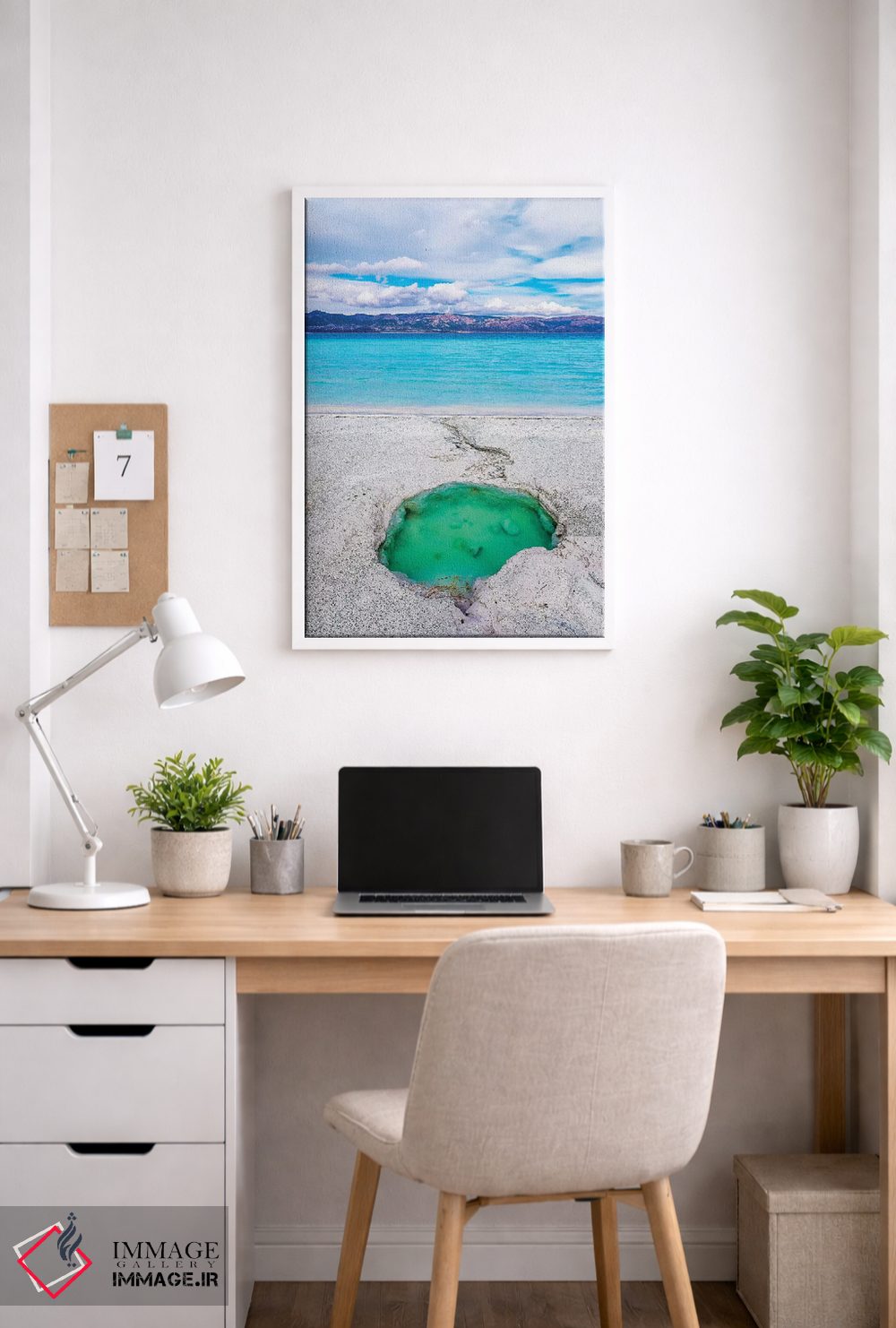 برای فضایی که میخواهید مرتبتر و حرفهایتر دیده شود، «Turkey I، دریاچه سالدا، ترکیه I» اثرِ «نجدت دوزن» در دکور، مثل یک امضای ظریف عمل میکند؛ برای محیطهای کاری و استودیوهای خلاق پیشنهاد میشود. با مبلمان خنثی، تضاد دلنشینی میسازد.