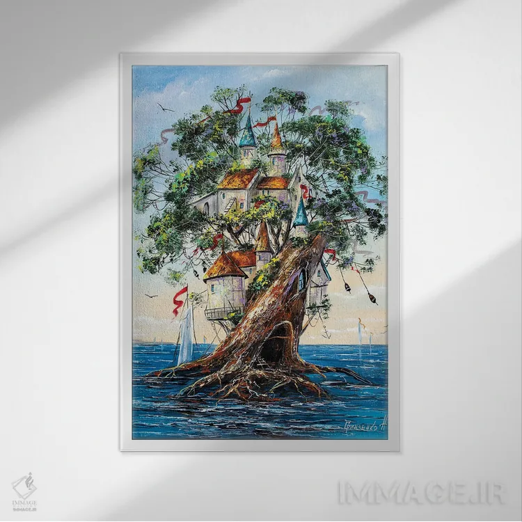 تابلو دکوراتیو درخت زندگی اثر ناتالیا گرینچنکو - نمای قاب‌دار سفید