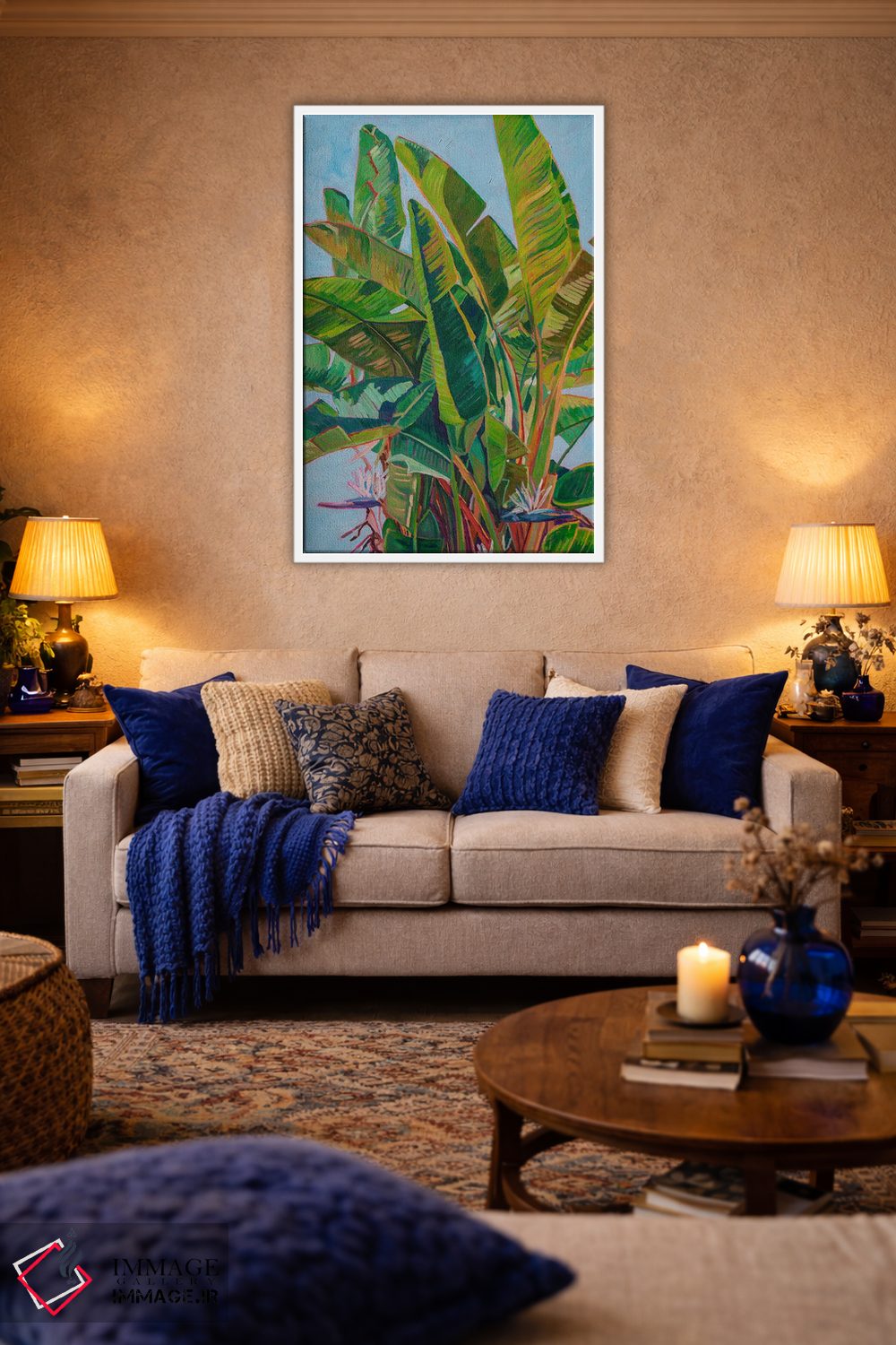 برای راهنمایی دربارهی قاب، اندازه یا سفارشهای ویژه، با ایماژ از طریق تماس—با—ما/">تماس با ما در ارتباط باشید برای اینکه بهترین گزینه را پیدا کنید. اگر انتخابتان این است که اثر در محیط «مدرن و ساده» دیده شود، نور موضعی ملایم نتیجه را بهتر نشان میدهد و جلوهی گالریوار بیشتری میدهد.