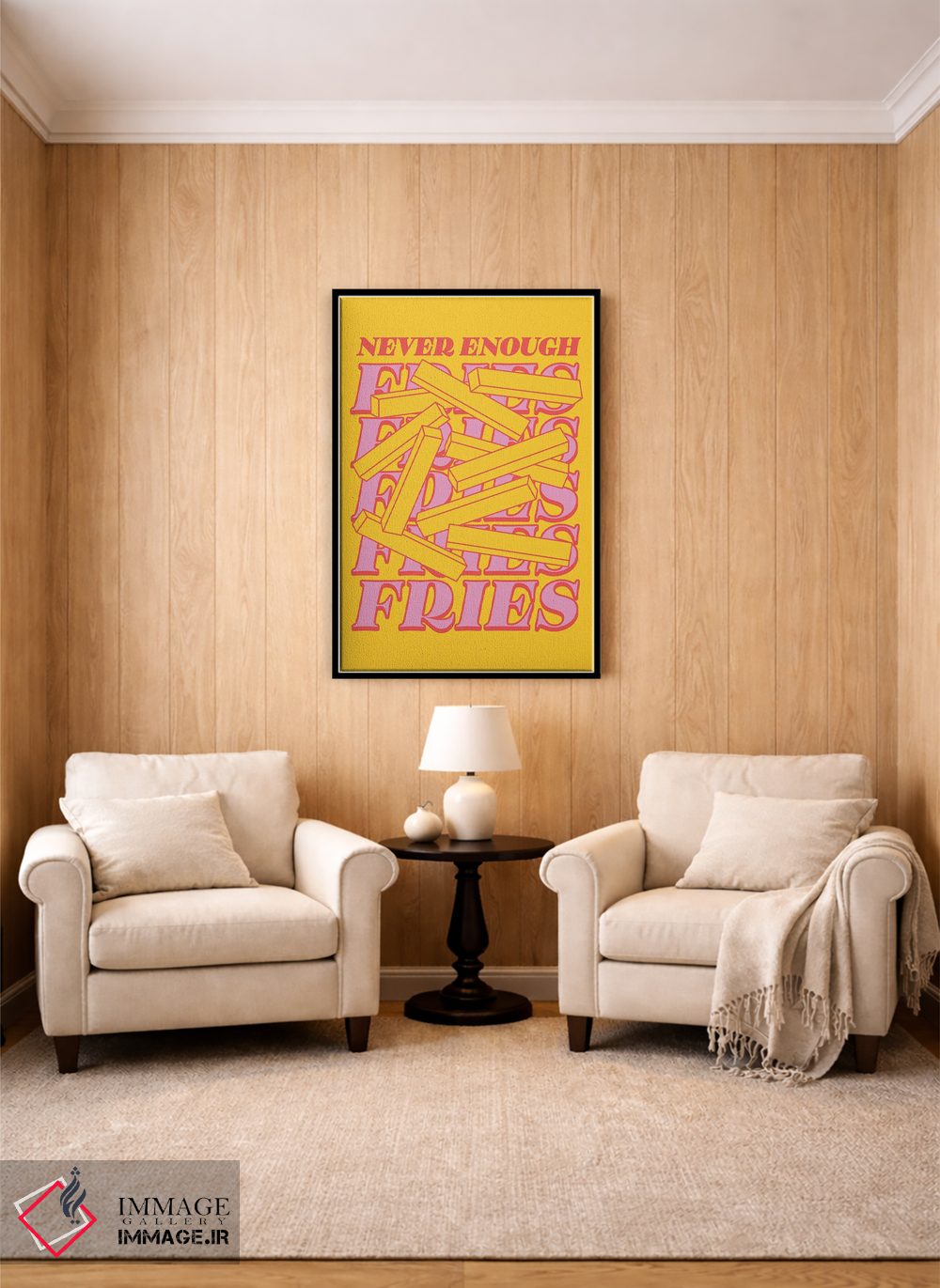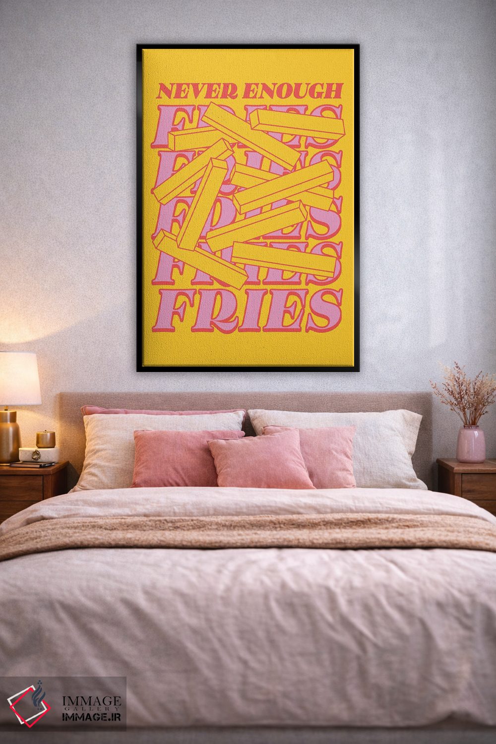 تابلو دکوراتیو سیب زمینی سرخ کرده هیچوقت کافی نیست زرد اثر نورا گازار