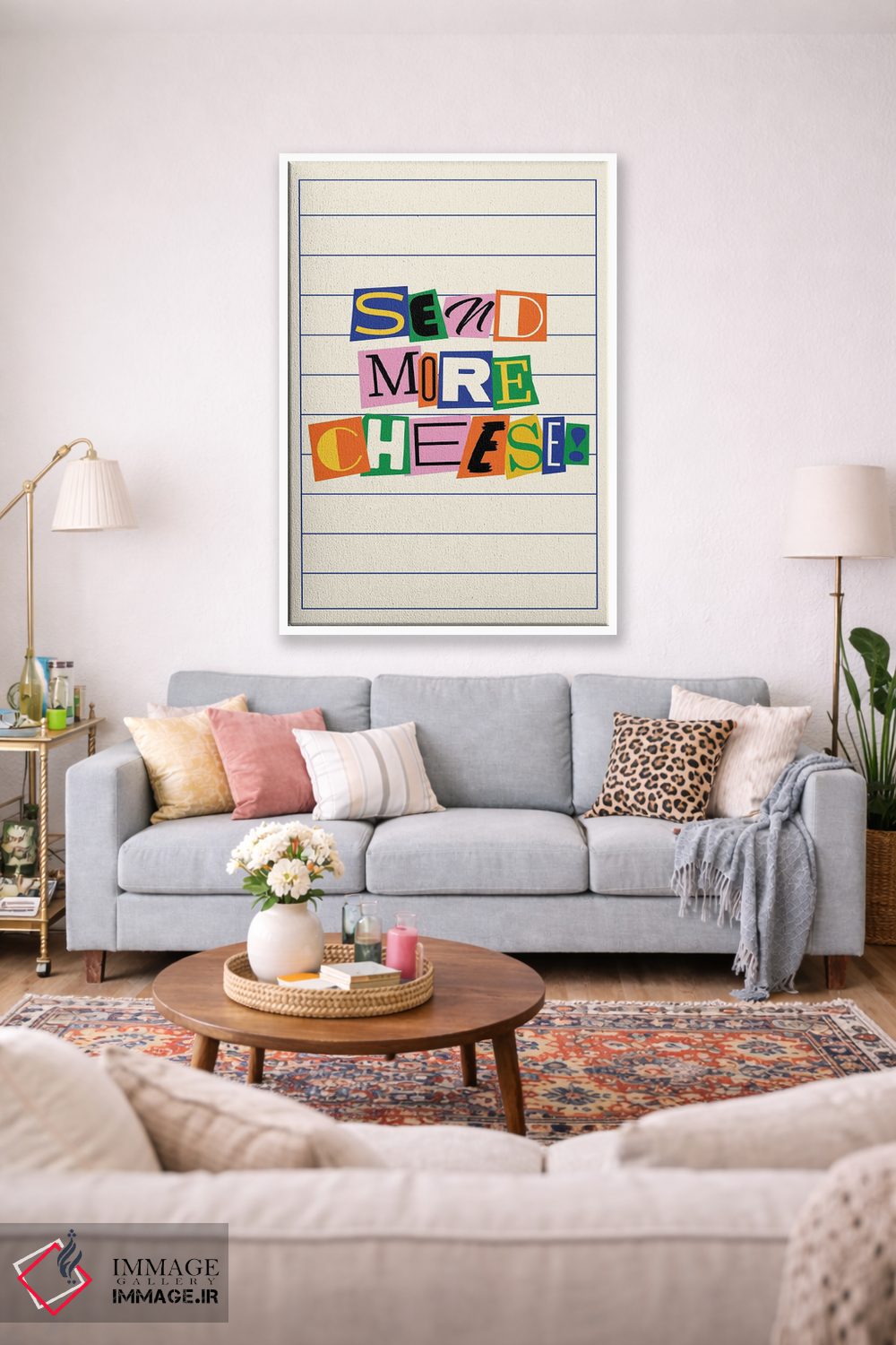 تابلو دکوراتیو پنیر بیشتری بفرست اثر نورا گازار - نمای روبه‌رو روی دیوار
