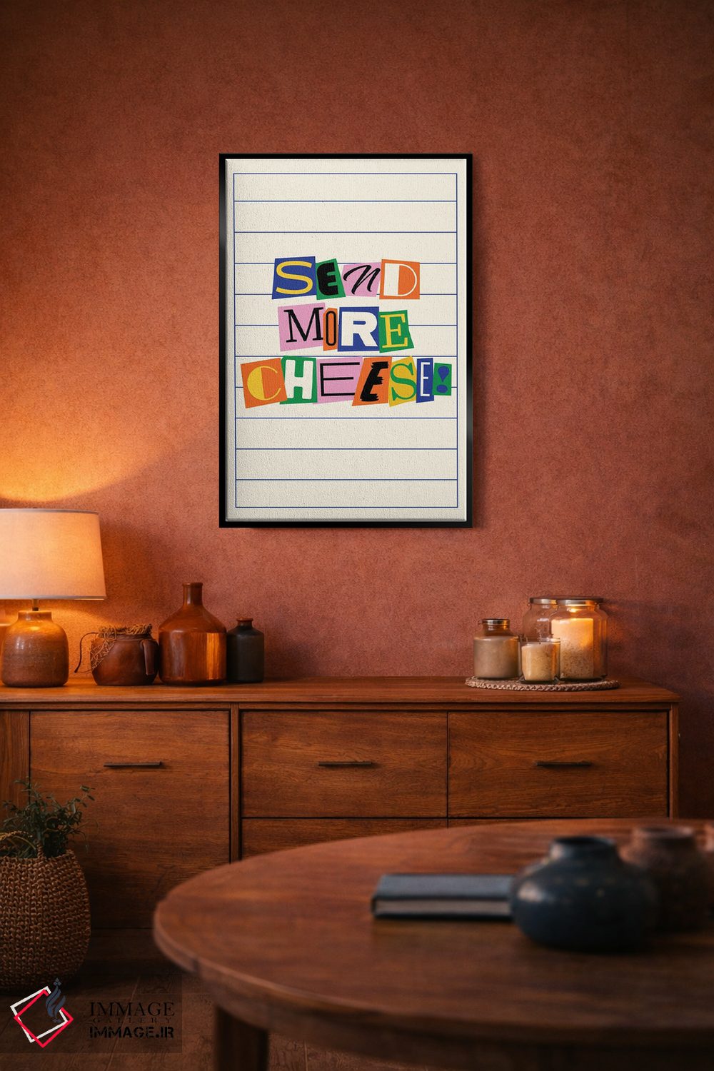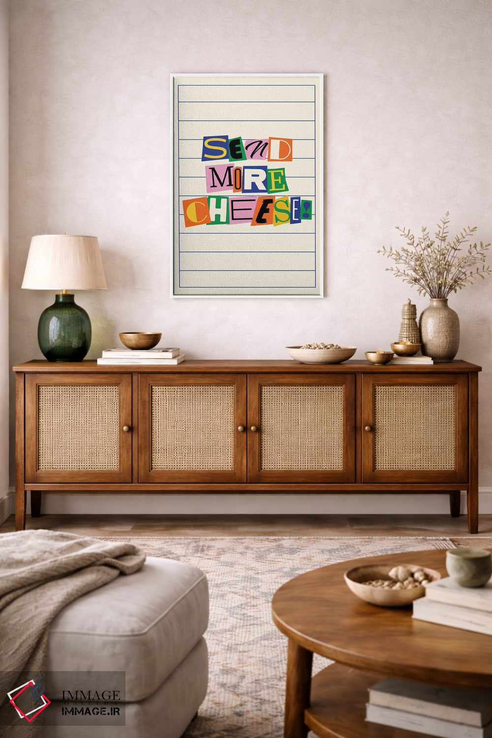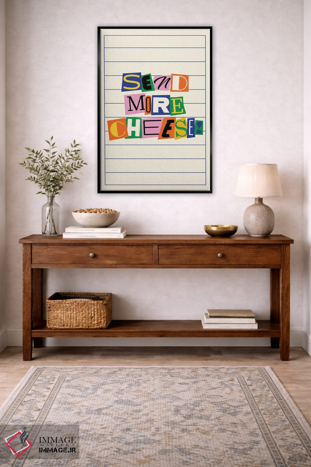 تابلو دکوراتیو پنیر بیشتری بفرست اثر نورا گازار - نمای قاب‌دار مشکی