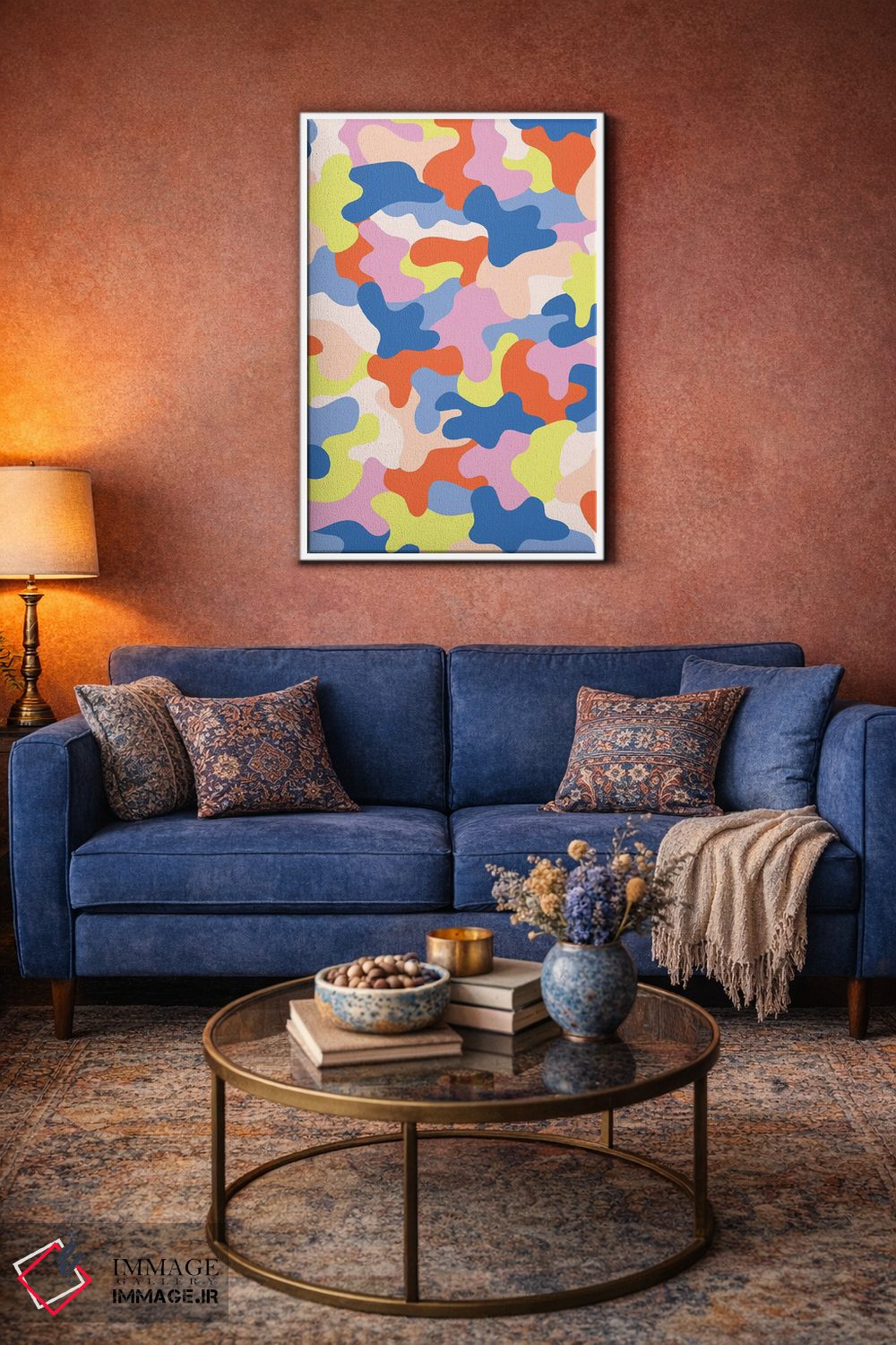 براساس پالت ترکیبی اثر، قاب تیک گرم (چوبی) پیشنهاد اول است و مشکی مات (فریم متوسط) مکمل. برای سفارشهای پروژهای با ابعاد و قابهای اختصاصی با ایماژ در تماس باشید.