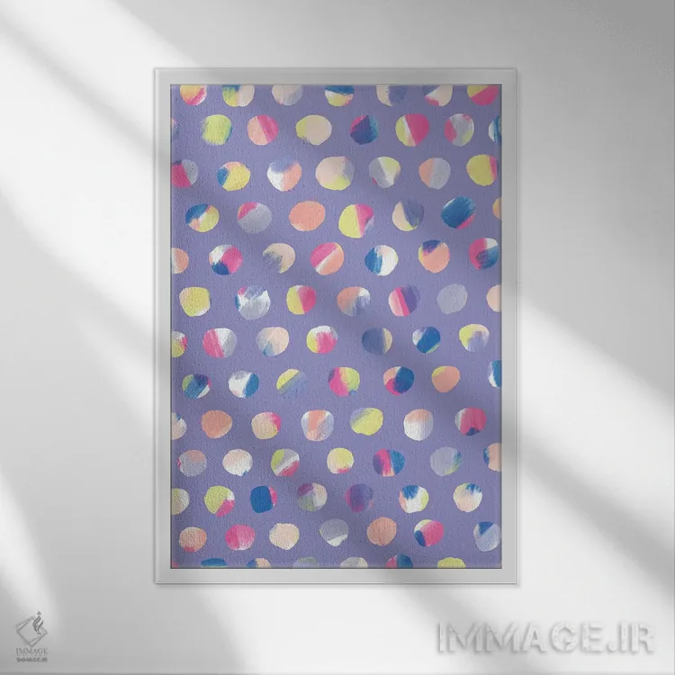 تابلو انتزاعی نقطه های نقاشی شده اثر نادیا حسن - نمای قاب‌دار سفید